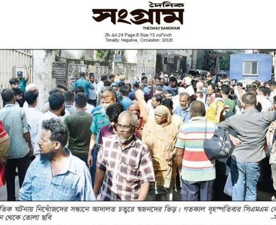 সংগ্রাম, ২৬ জুলাই ২০২৪, সাম্প্রতিক ঘটনায় নিখোঁজদের সন্ধানে আদালত চত্বরে স্বজনদের ভিড়