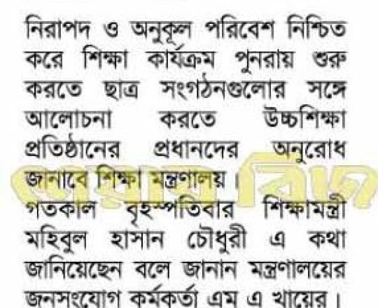 শেয়ার বিজ, ২৬ জুলাই ২০২৪, ক্লাস শুরুর বিষয়ে আলোচনা করবে শিক্ষা মন্ত্রণালয়