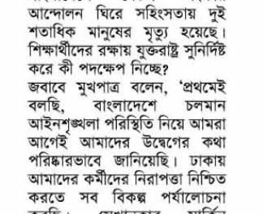 আজকালের খবর, ২৬ জুলাই ২০২৪, বাংলাদেশে সহিংসতা দেখতে চায় না যুক্তরাষ্ট্র
