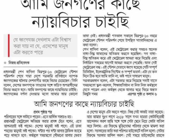 আজকের পত্রিকা, ২৬ জুলাই ২০২৪, দেশবাসীর কাছে বিচার চাইলেন প্রধানমন্ত্রী