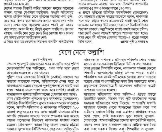 সময়ের আলো, ২৬ জুলাই ২০২৪, মেসে মেসে তল্লাশি