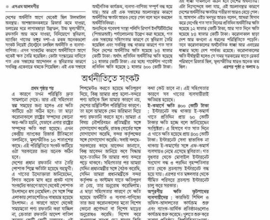 সময়ের আলো, ২৬ জুলাই ২০২৪, অর্থনীতিতে সংকট আরও বাড়ল