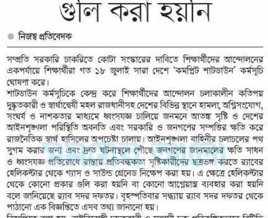 সময়ের আলো, ২৬ জুলাই ২০২৪, হেলিকপ্টার থেকে গুলি করা হয়নি