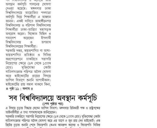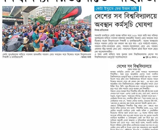যুগান্তর, ৩ জুলাই ২০২৪, কোটা বাতিলের দাবি সব বিশ্ববিদ্যালয়ে অবস্থান কর্মসূচি ঘোষণা
