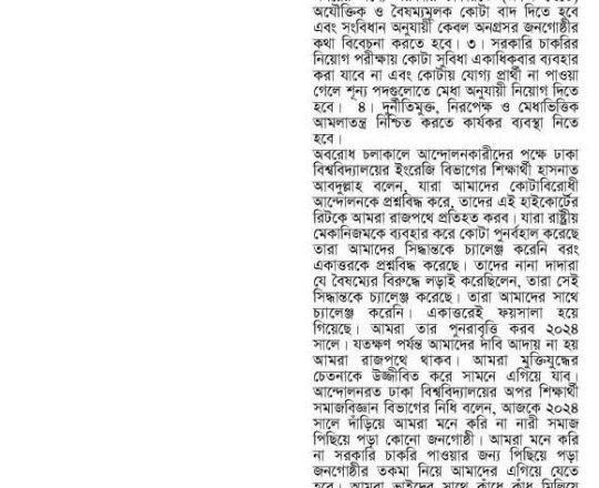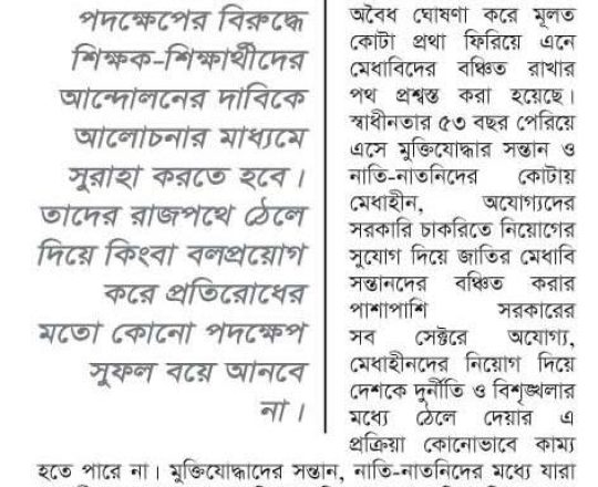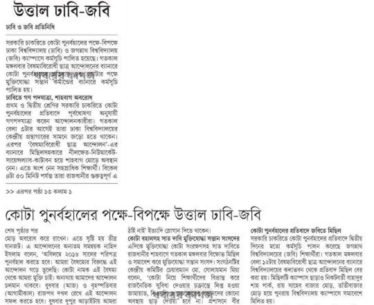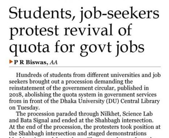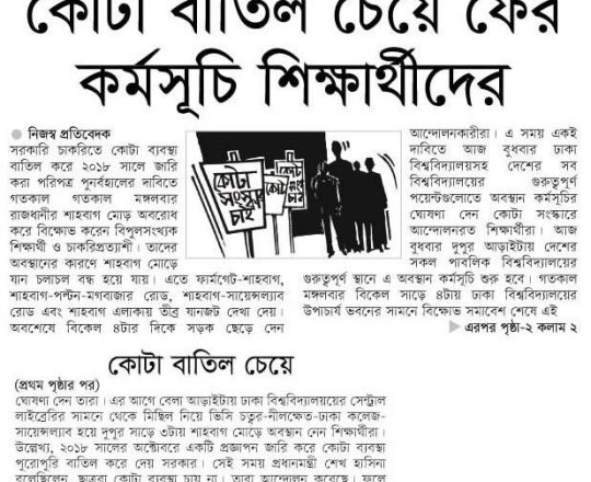 Bangladesh Today, 3 july 2024, To reinstate the quota system in government jobs