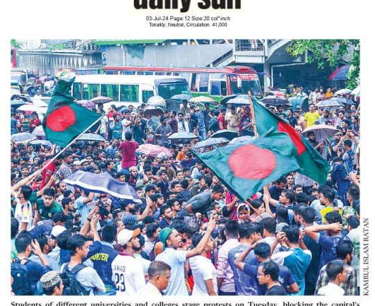 Daily Sun, 3 july 2024, Students of different universities and colleges stage protests on Tuesday