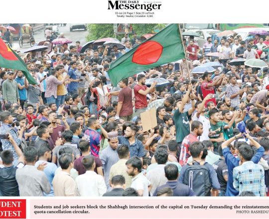 Daily Messenger, 3 july 2024, Students and job seekers block the Shahbagh
