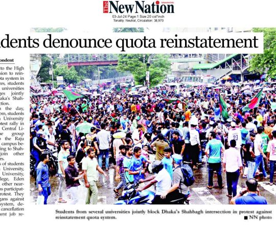 New Nation, 3 july 2024, Students denounce quota reinstatement