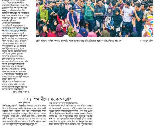 ভোরের কাগজ, ৩ জুলাই ২০২৪, কোটা পুনর্বহালের প্রতিবাদে অবরোধ-বিক্ষোভ