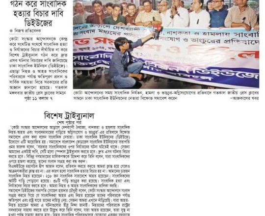 আজকালের খবর, ৩১ জুলাই ২০২৪, বিশেষ ট্রাইব্যুনাল গঠন করে সাংবাদিক হত্যার বিচার দাবি ডিইউজের