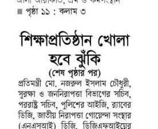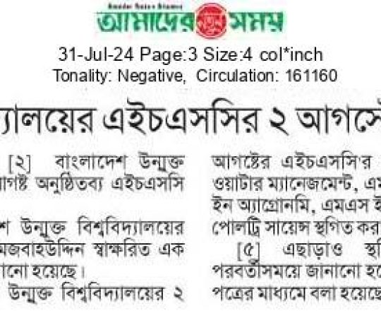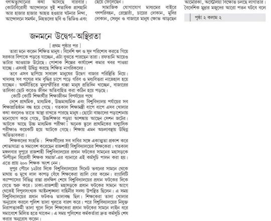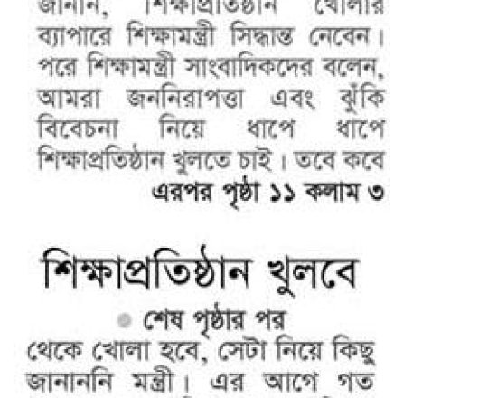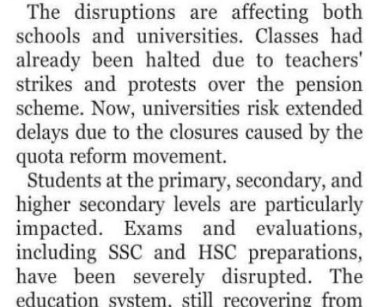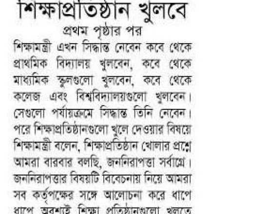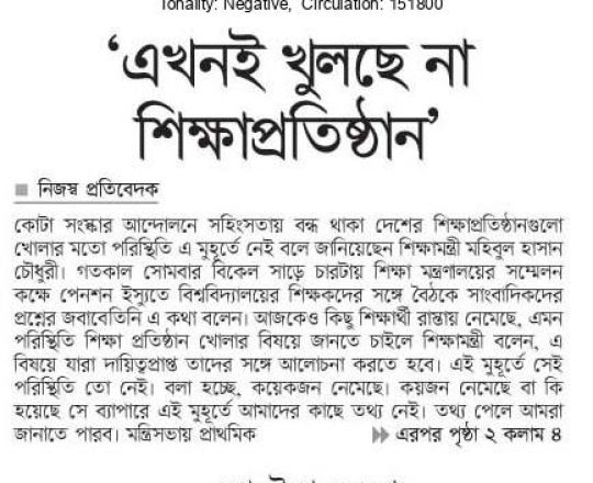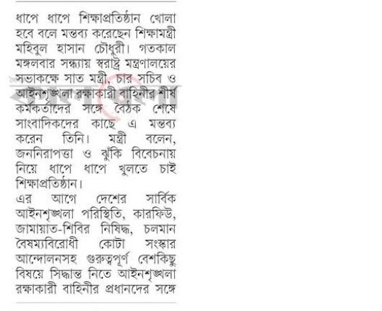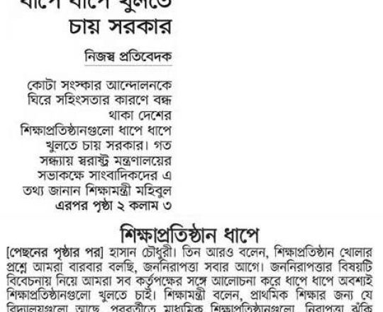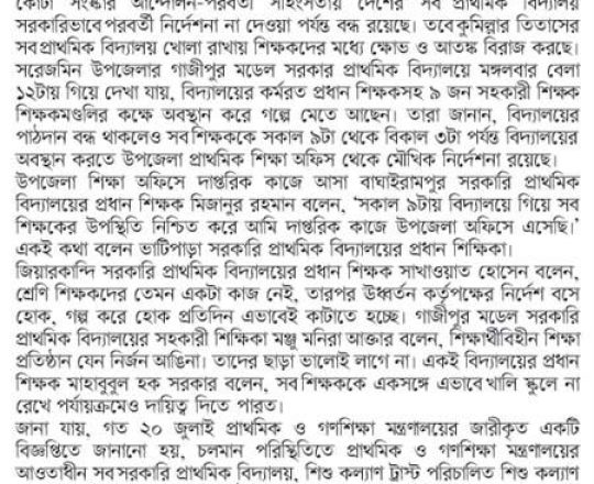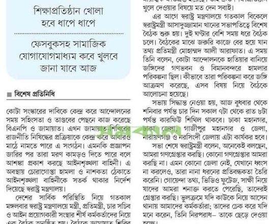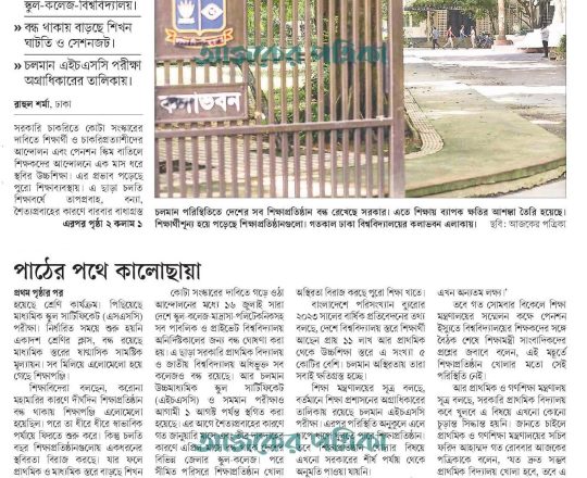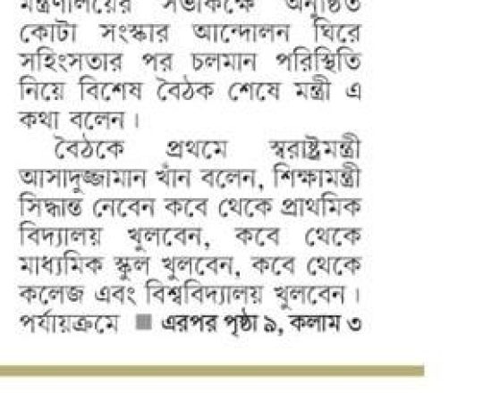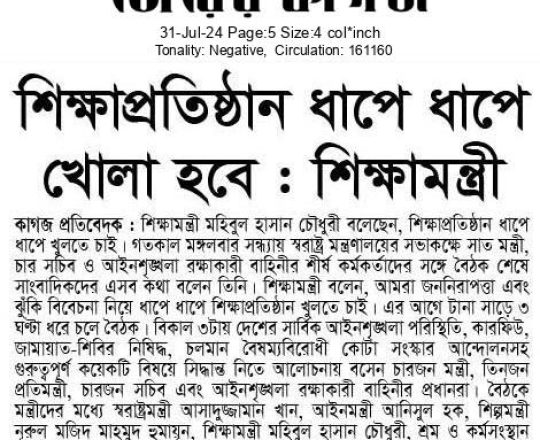 ভোরের পাতা, ৩১ জুলাই ২০২৪, 'এখনই খুলছে না শিক্ষাপ্রতিষ্ঠান'
