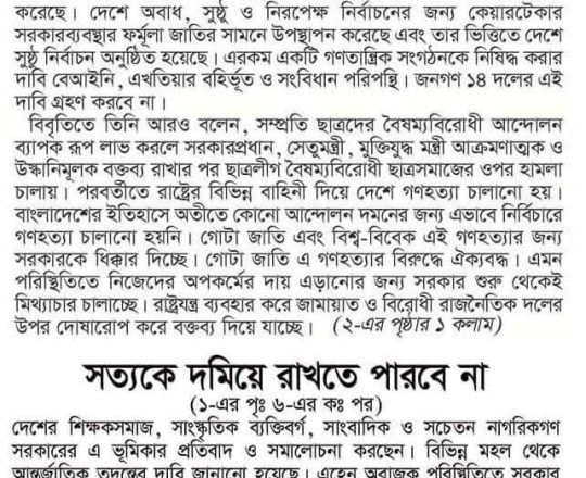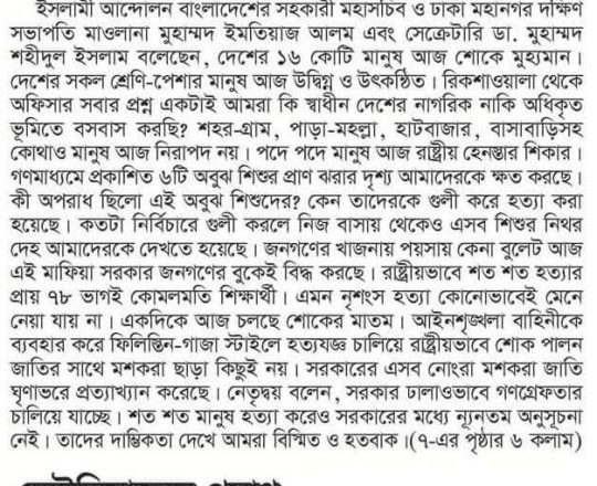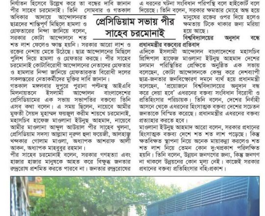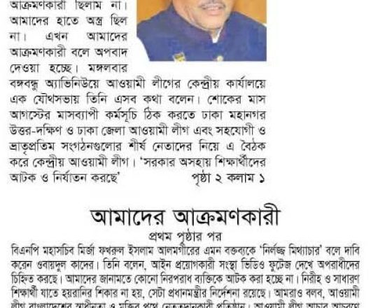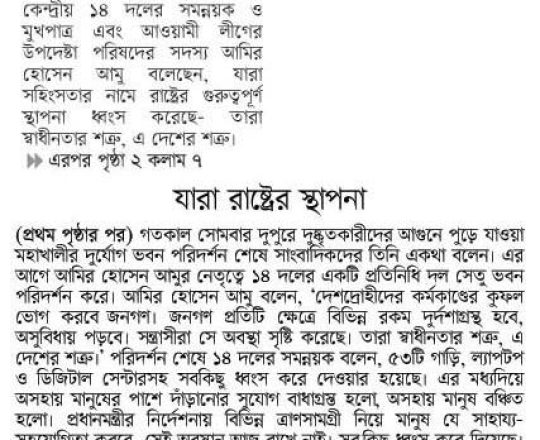 ভোরের পাতা, ৩১ জুলাই ২০২৪, যারা রাষ্ট্রের স্থাপনা ধ্বংস করেছে, তারা দেশের শত্রু-আমির হোসেন আমু