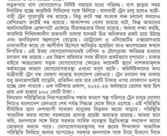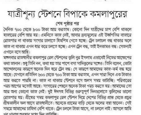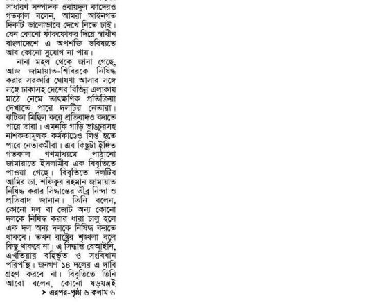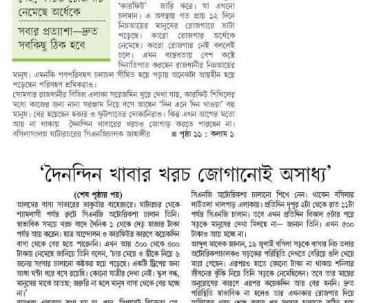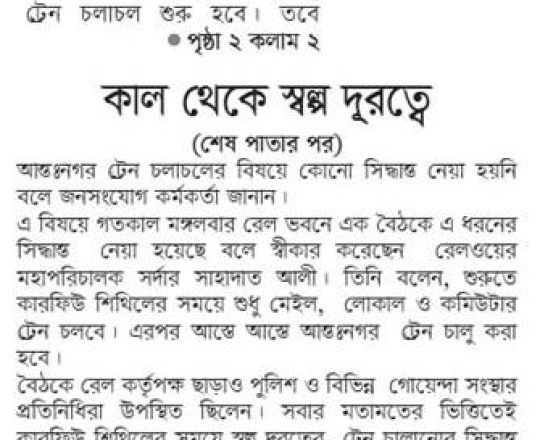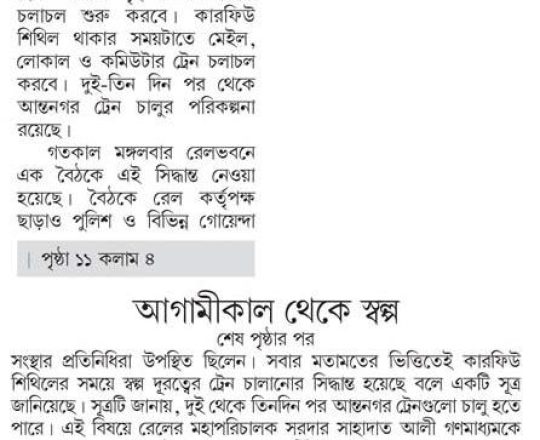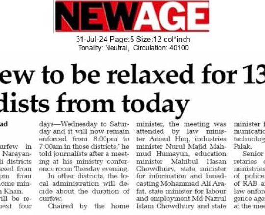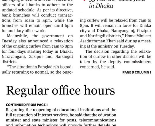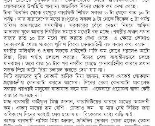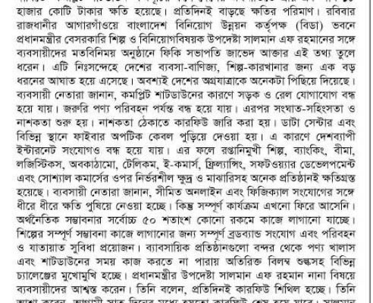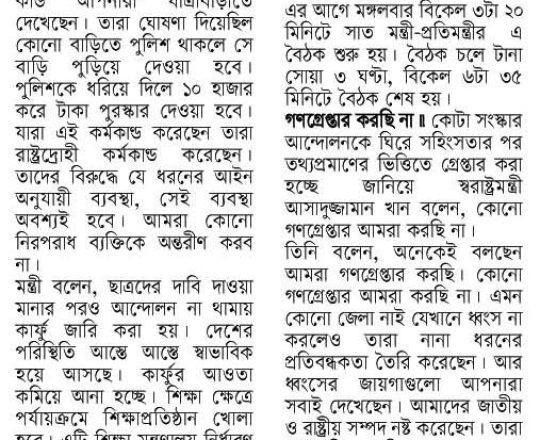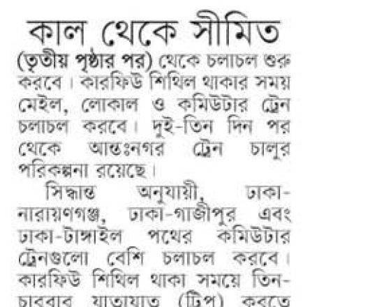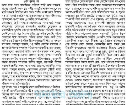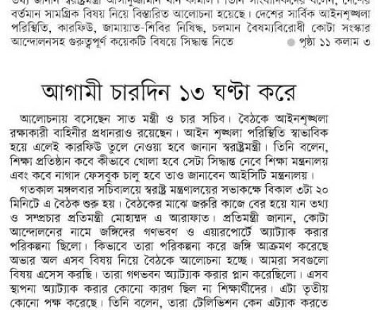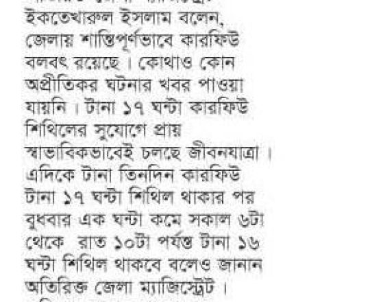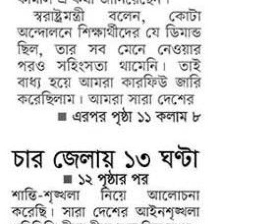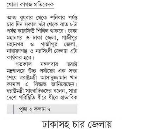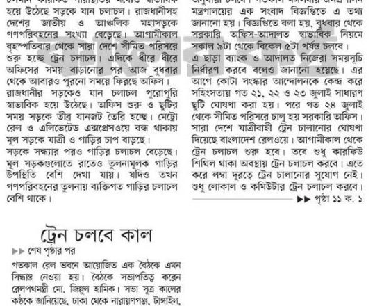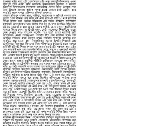 প্রথম আলো,৩১ জুলাই, সকাল ৭টা থেকে রাত ৮টা পর্যন্ত কারফিউ শিথিল