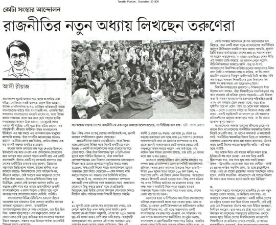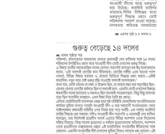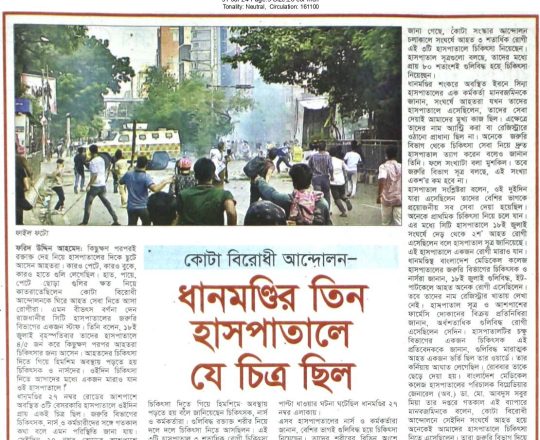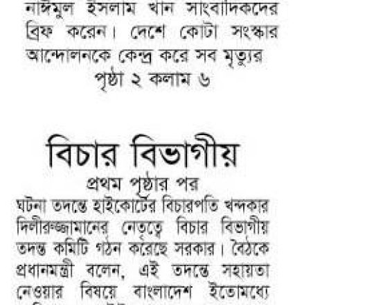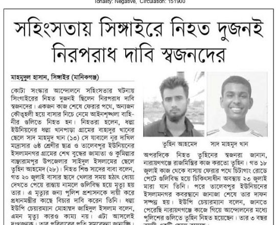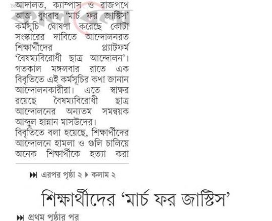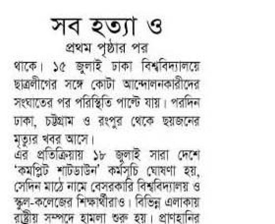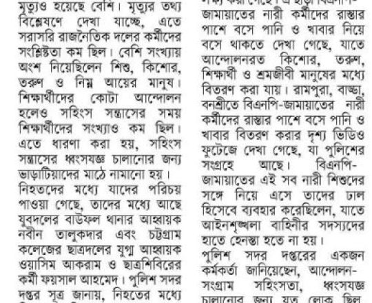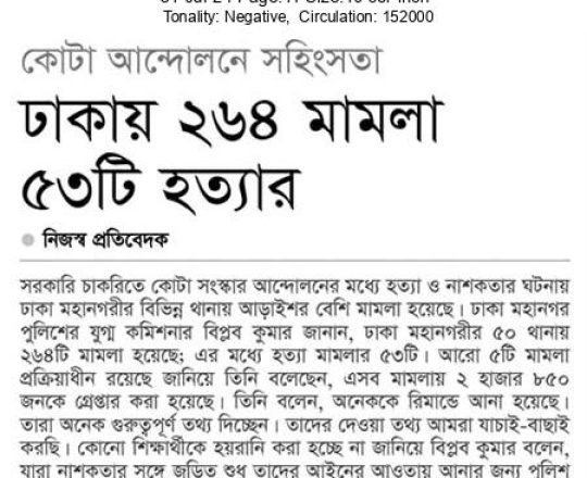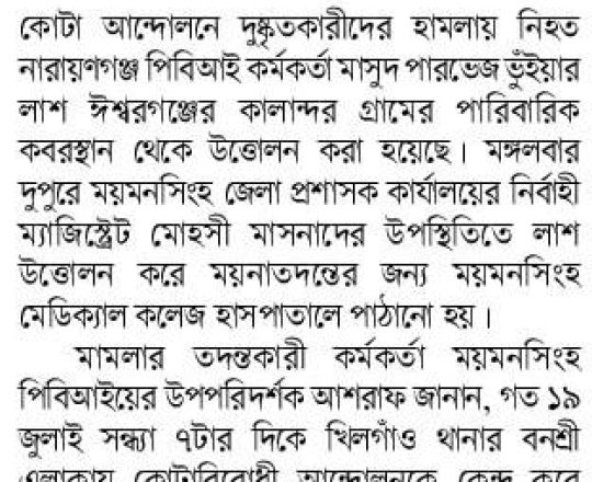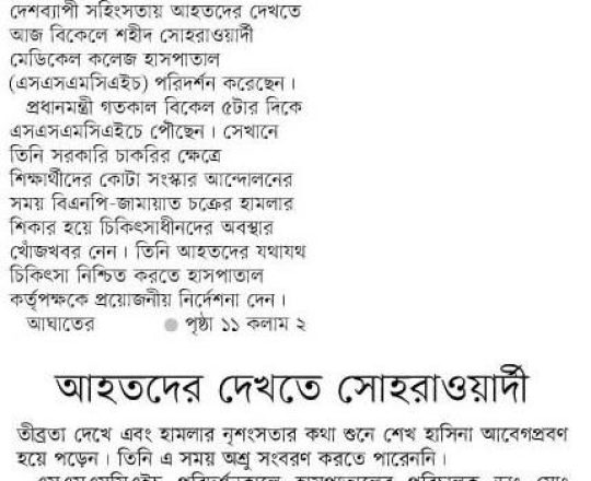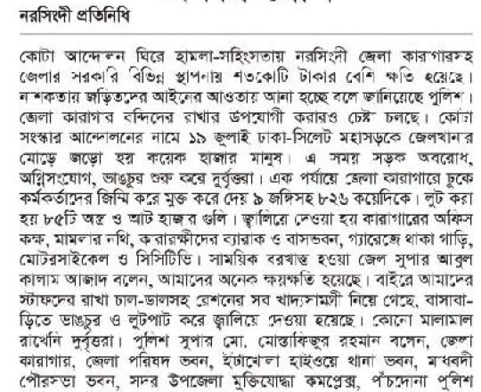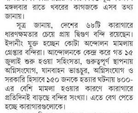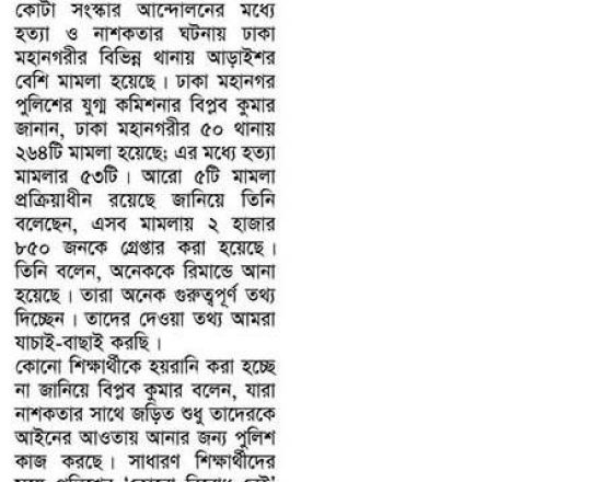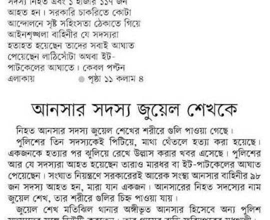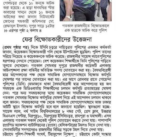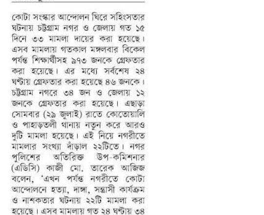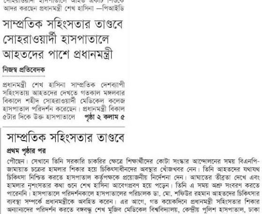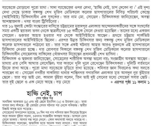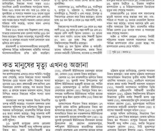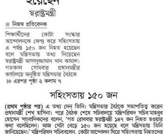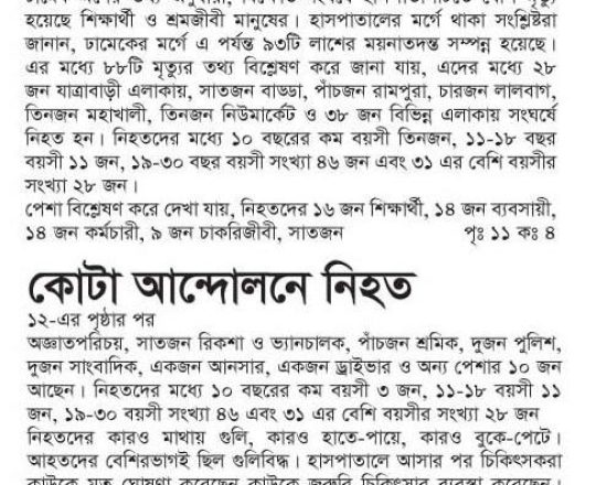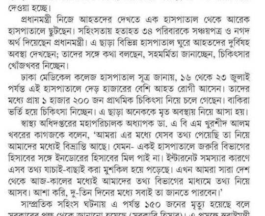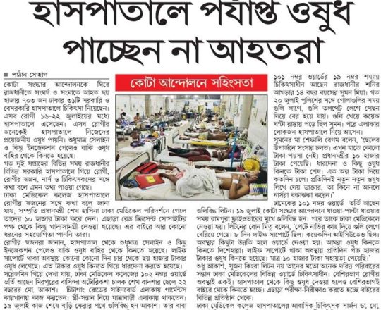 প্রথম আলো,৩১ জুলাই, কোটা সংস্কার আন্দোলনকে ঘিরে সংঘাতে নিহত বেড়ে ২১২
