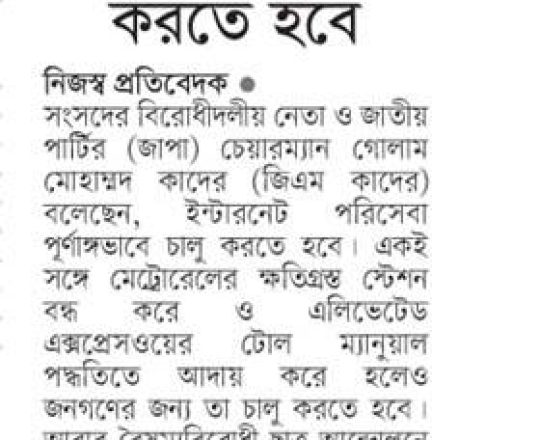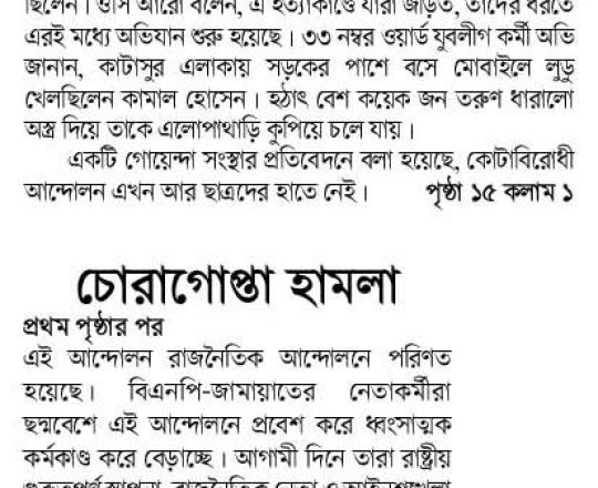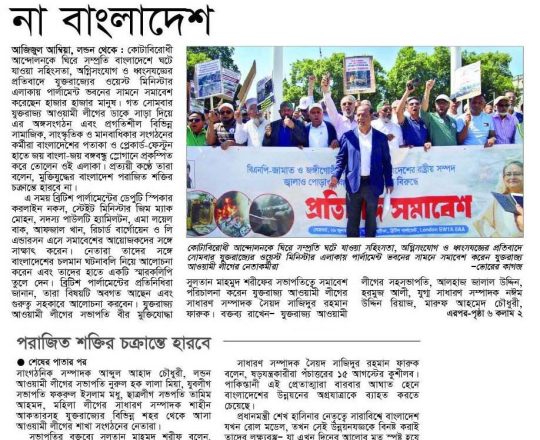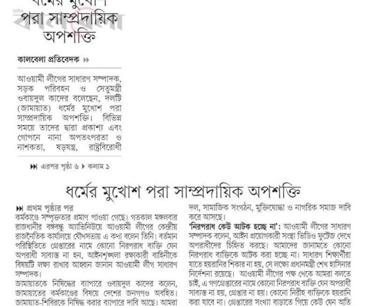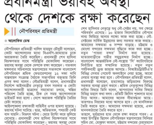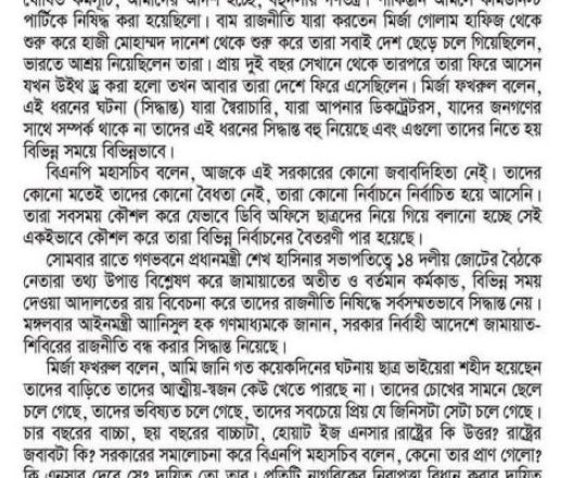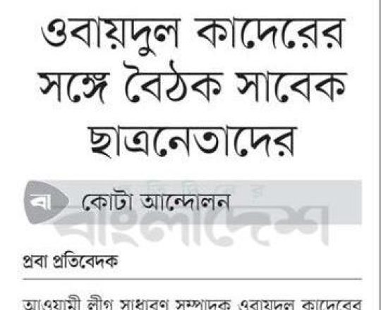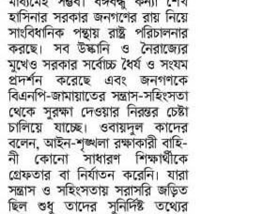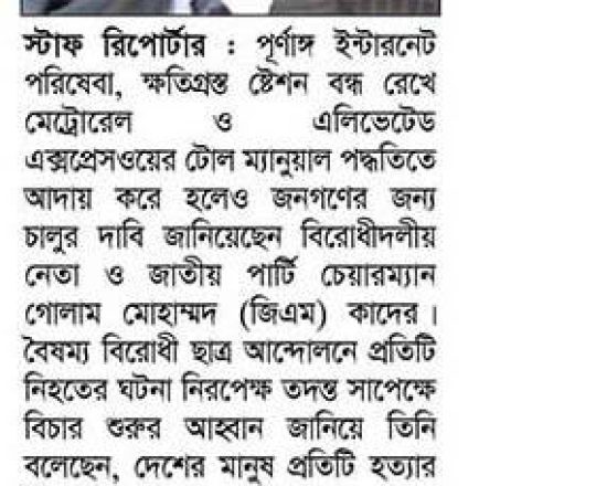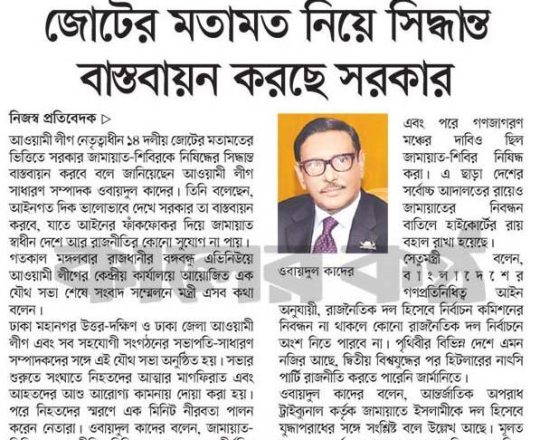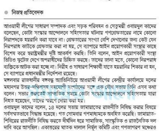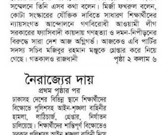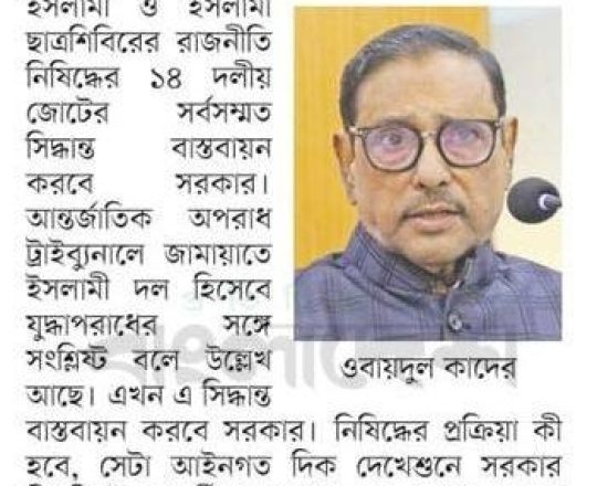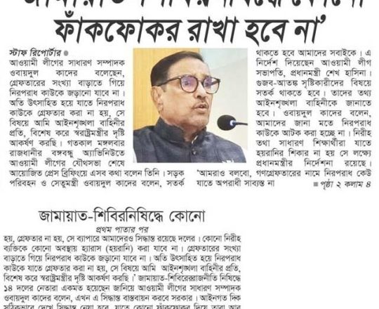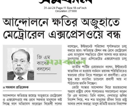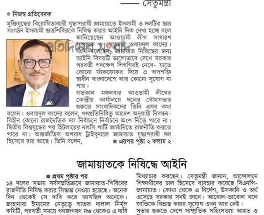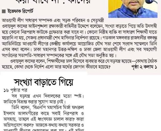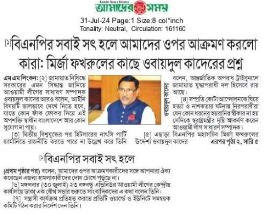ভোরের পাতা, ৩১ জুলাই ২০২৪, সরকারবিরোধী আন্দোলনে রূপ দিতে উন্মত্ত বিএনপি -ওবায়দুল কাদের