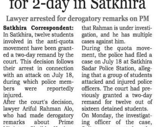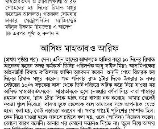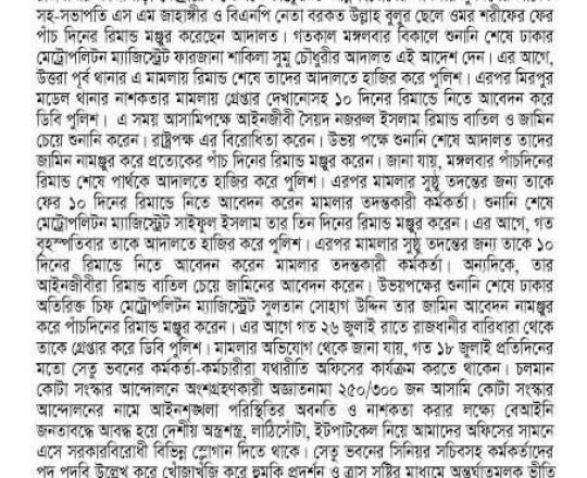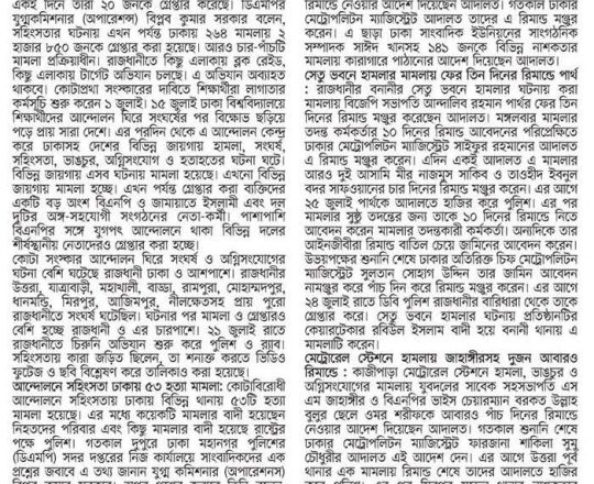 ভোরের পাতা, ৩১ জুলাই ২০২৪, আসিফ মাহতাব ও আরিফ সোহেল ছয় দিনের রিমান্ডে