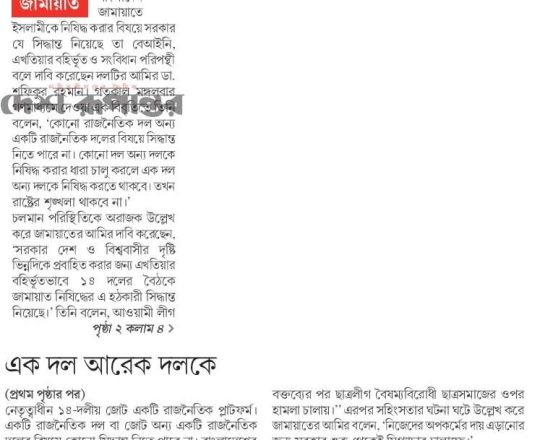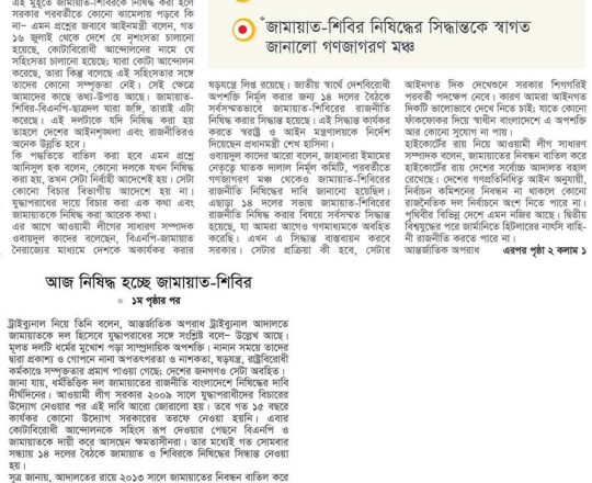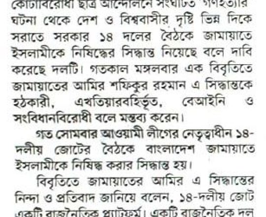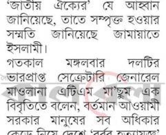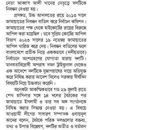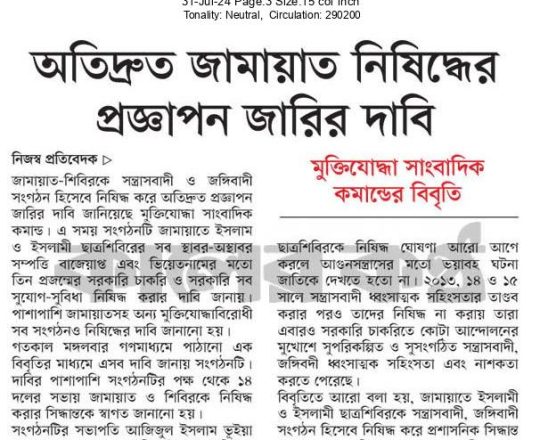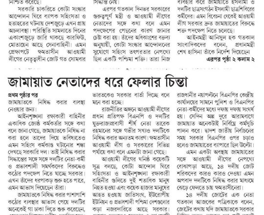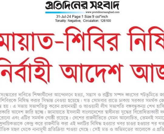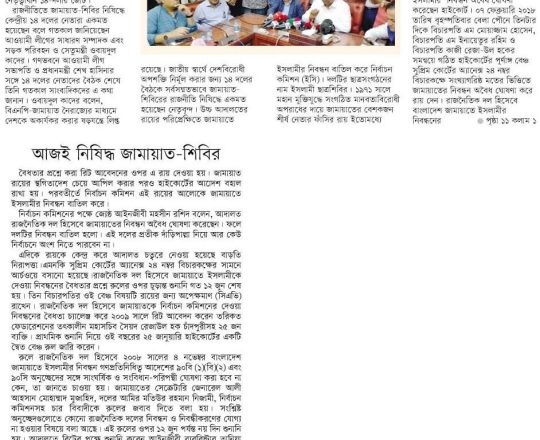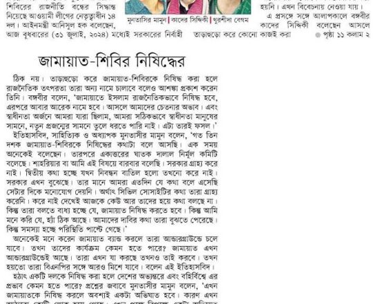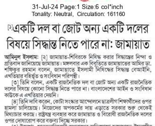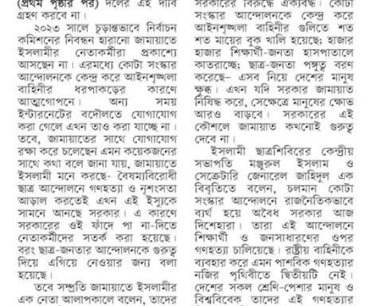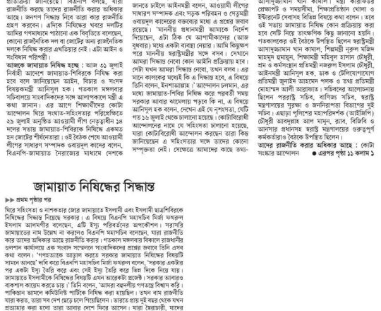 ভোরের আকাশ, ৩১ জুলাই ২০২৪, জামায়াত রাজনীতির সমাধি