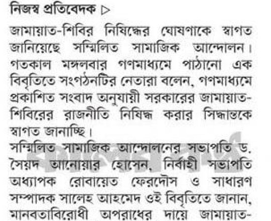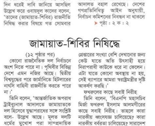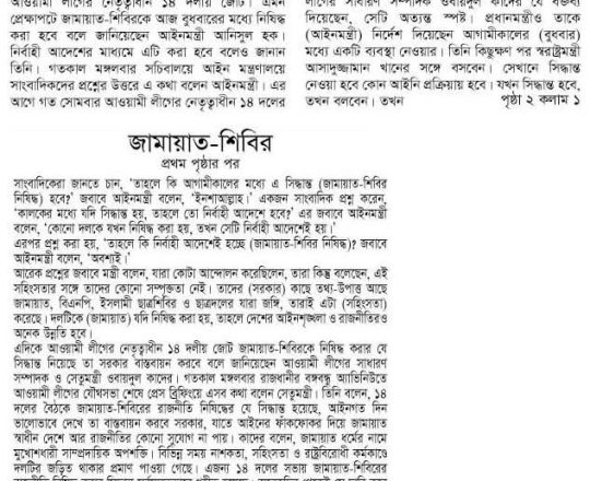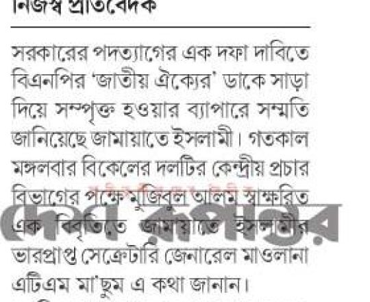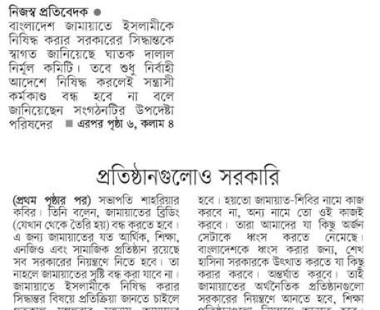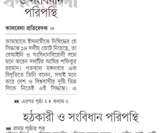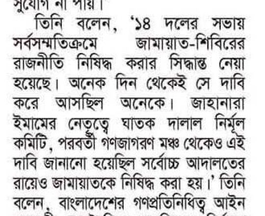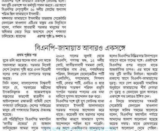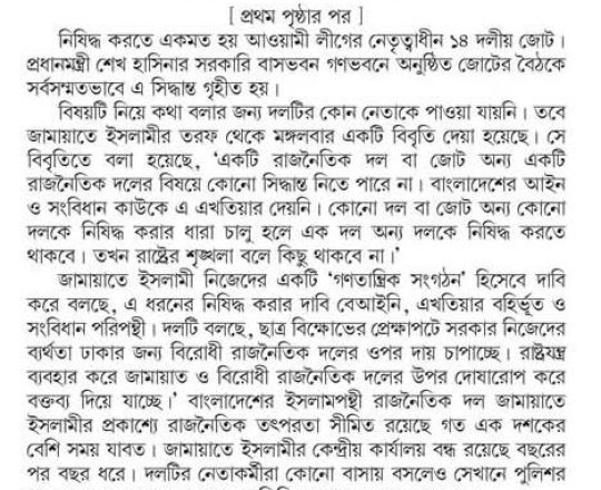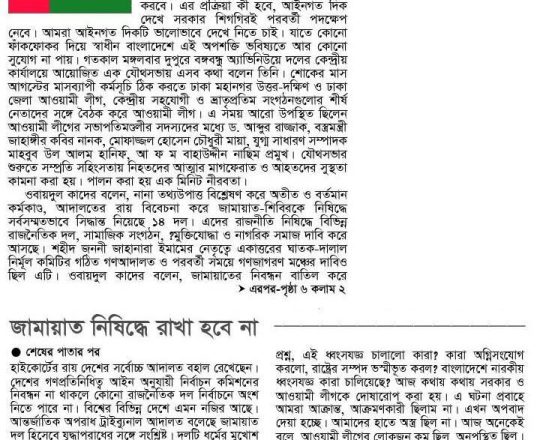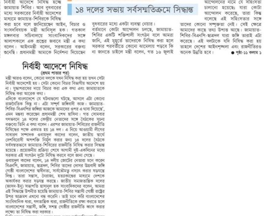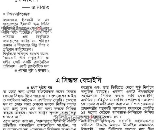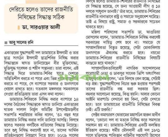 ভোরের আকাশ, ৩১ জুলাই ২০২৪, জামায়াত রাজনীতির সমাধি