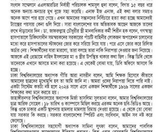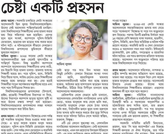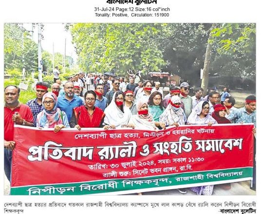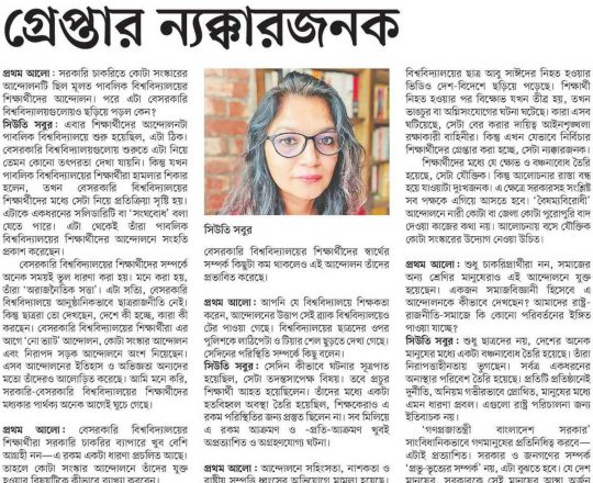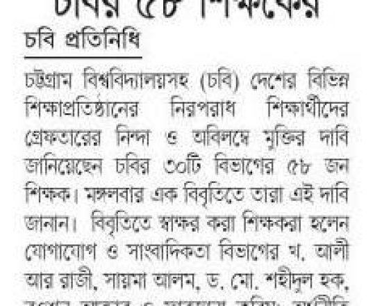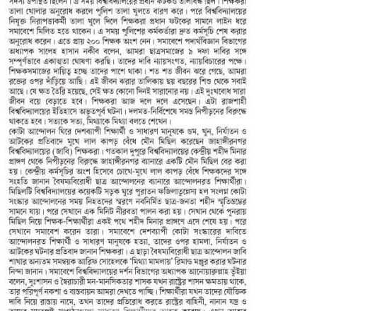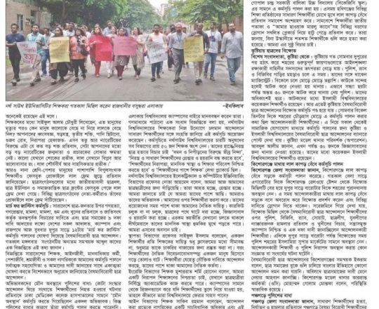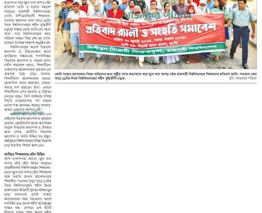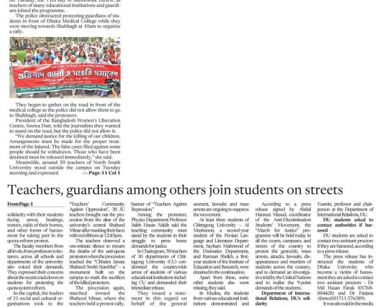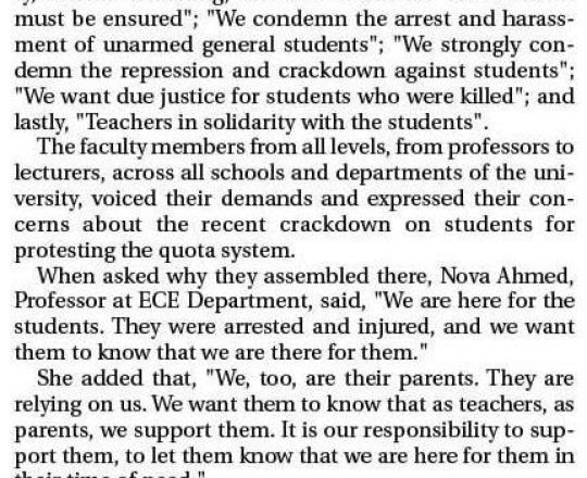 প্রথম আলো,৩১ জুলাই, শিক্ষার্থীদের গ্রেপ্তার ও হয়রানি বন্ধের দাবিতে নর্থ সাউথের শিক্ষকদের সমাবেশ