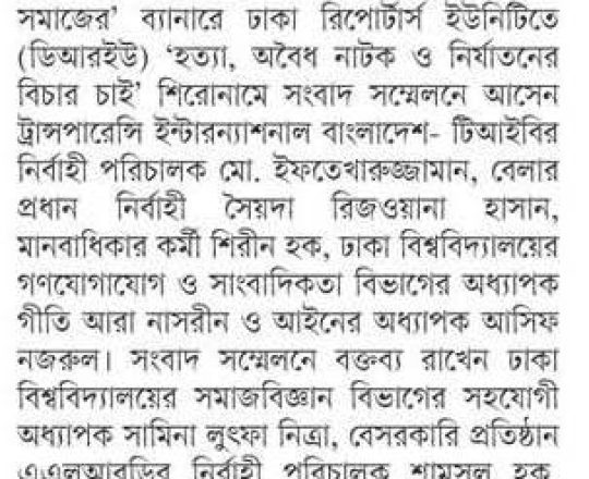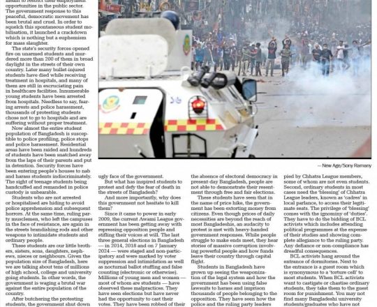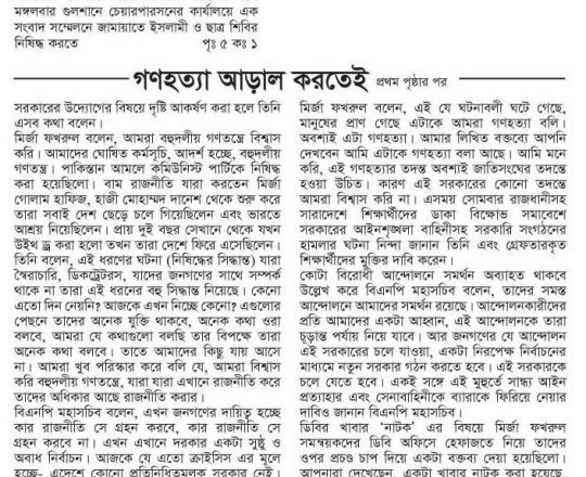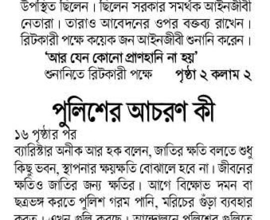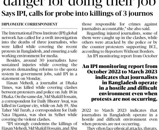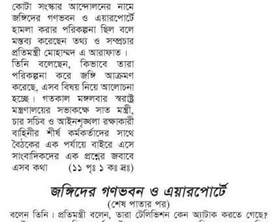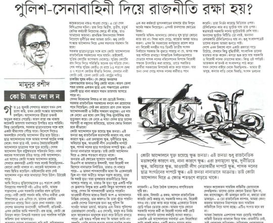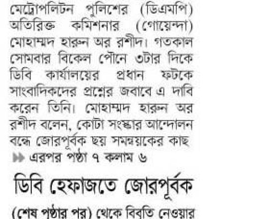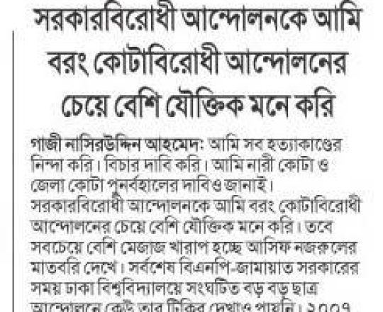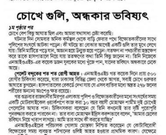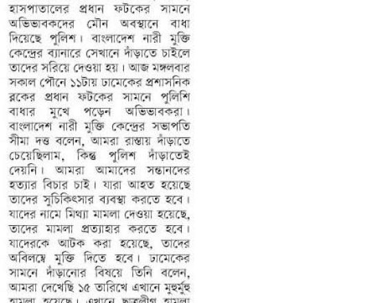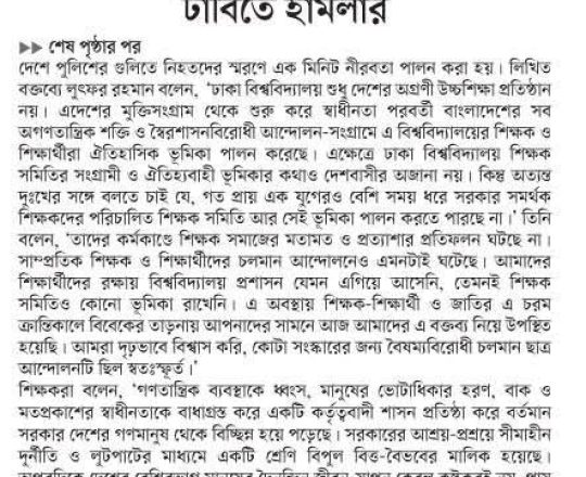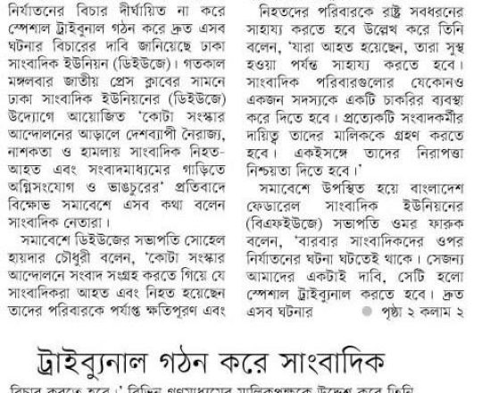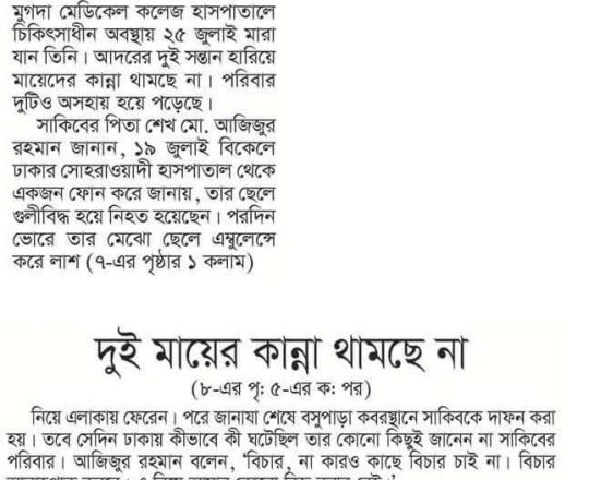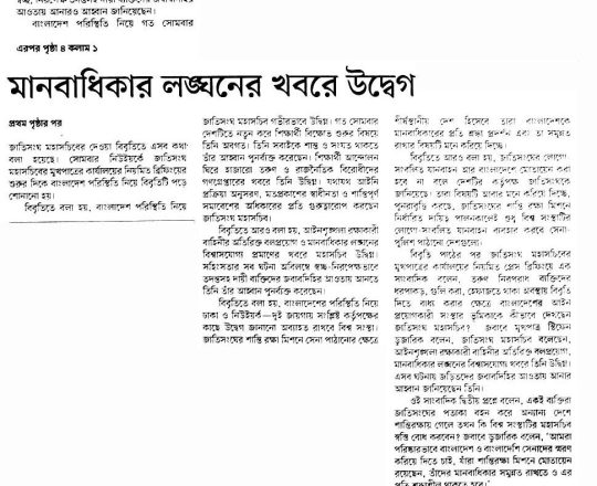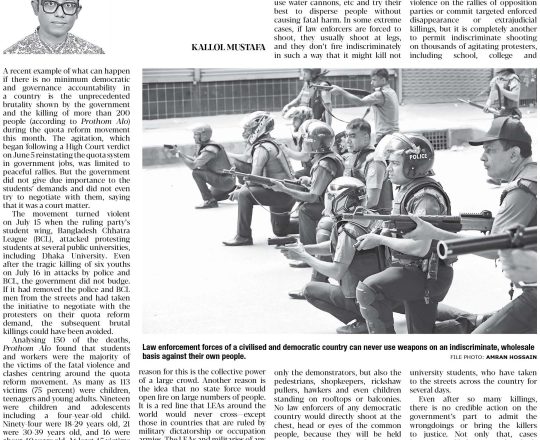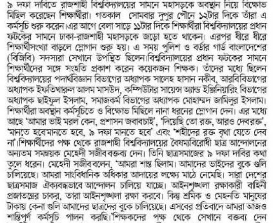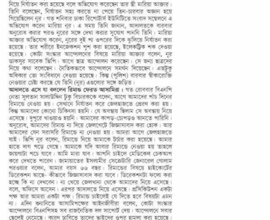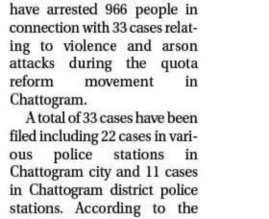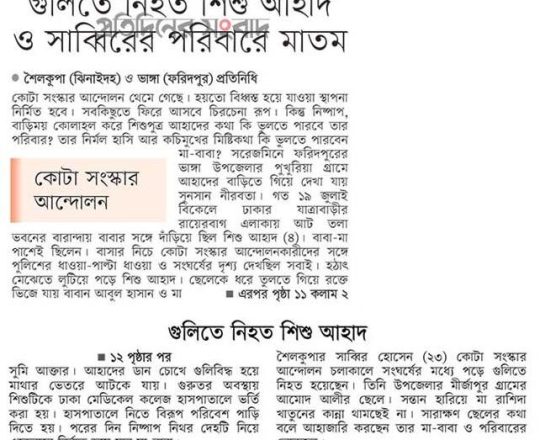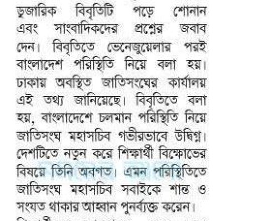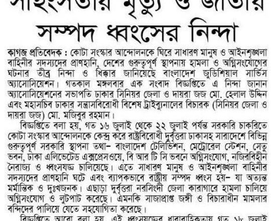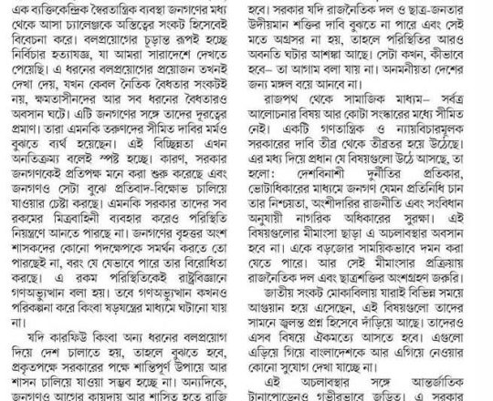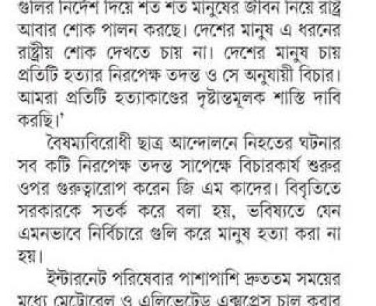 প্রথম আলো,৩১ জুলাই,আইনশৃঙ্খলা বাহিনীর অতিরিক্ত বলপ্রয়োগ ও মানবাধিকার লঙ্ঘনের বিশ্বাসযোগ্য প্রমাণের খবরে উদ্বিগ্ন জাতিসংঘ