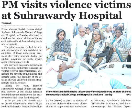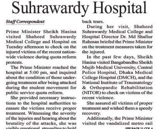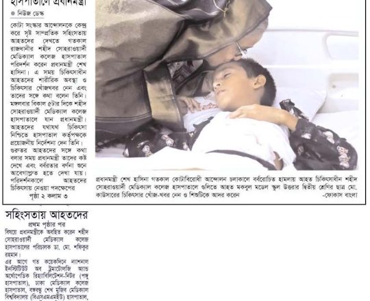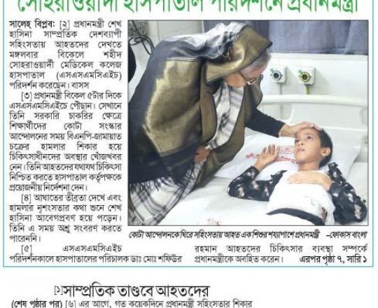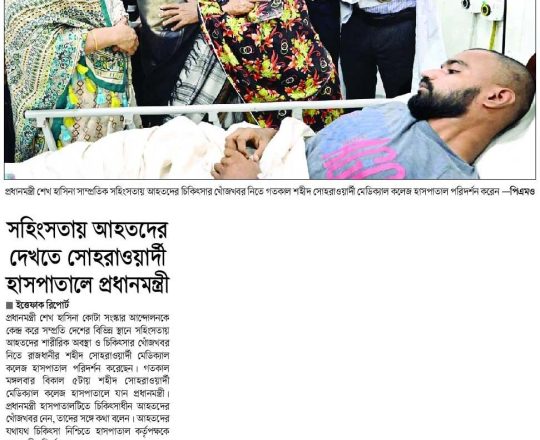 আলোকিত বাংলাদেশ, ৩১ জুলাই ২০২৪, সাম্প্রতিক তাণ্ডবে আহতদের দেখতে সোহরাওয়ার্দী হাসপাতাল পরিদর্শন প্রধানমন্ত্রীর