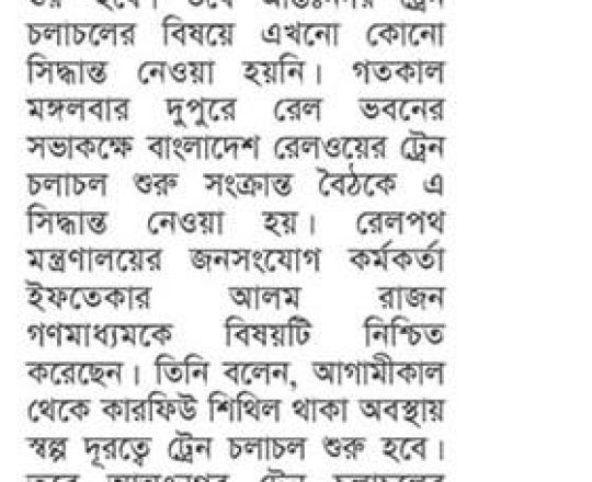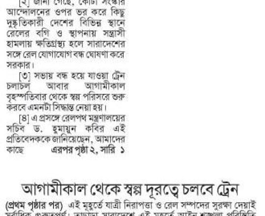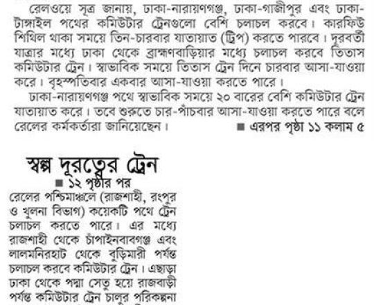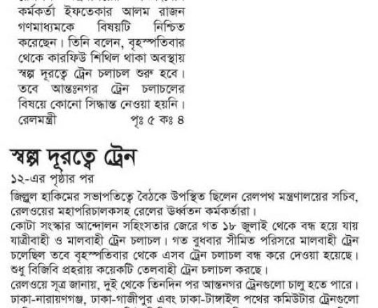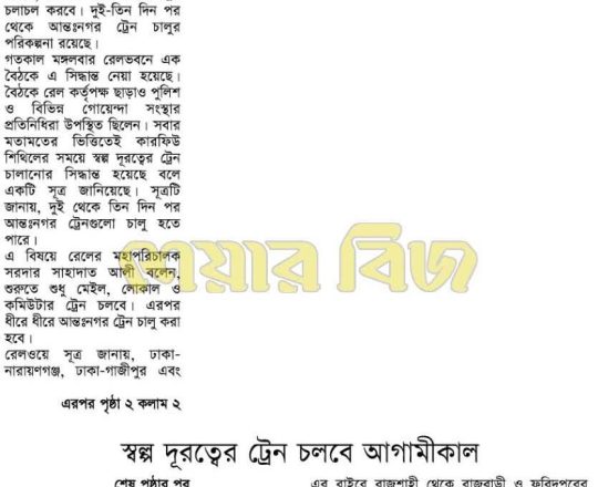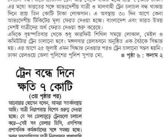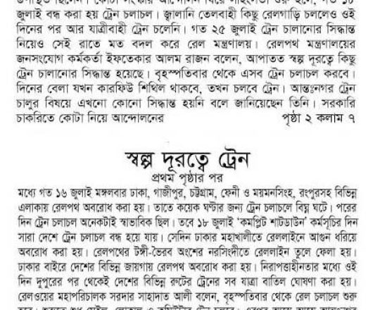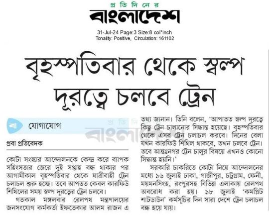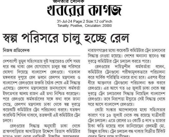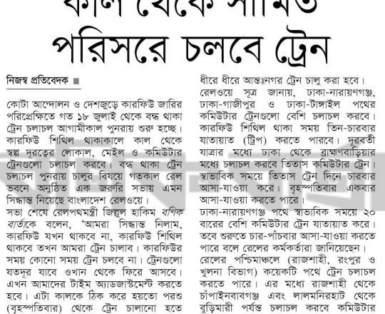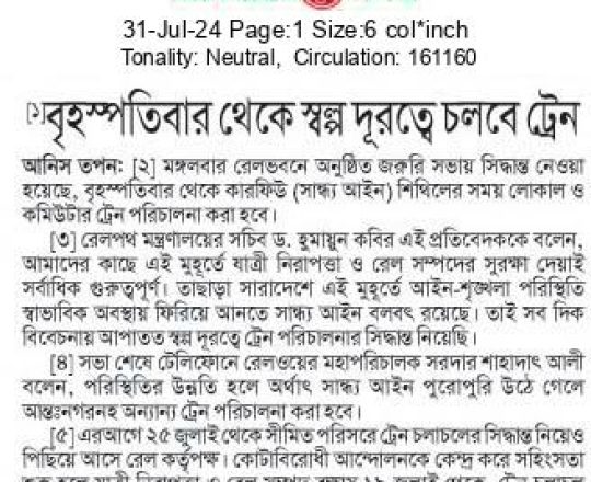 আজকের পত্রিকা, ৩১ জুলাই ২০২৪, কাল থেকে স্বল্প দূরত্বে, সীমিত সময়ে চলবে ট্রেন