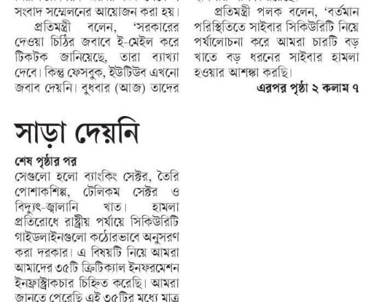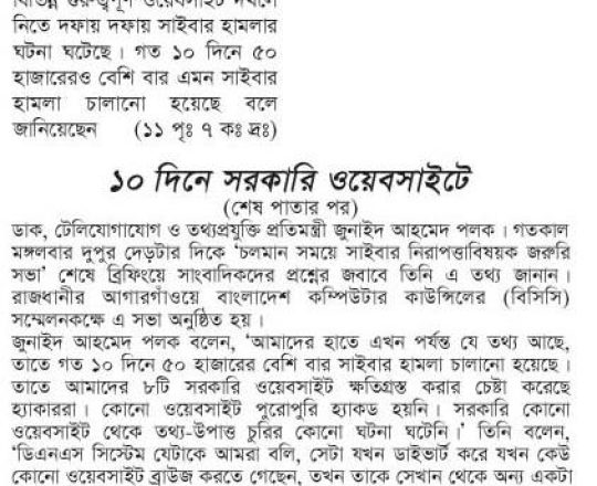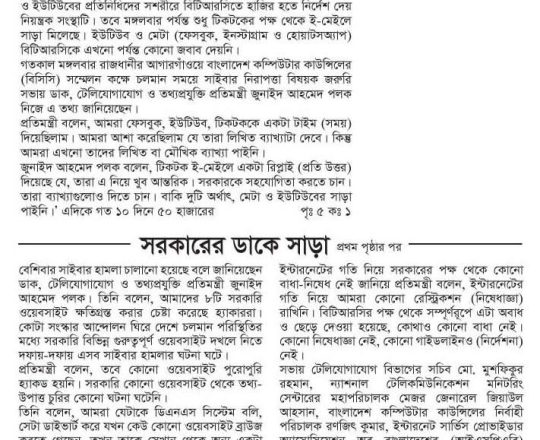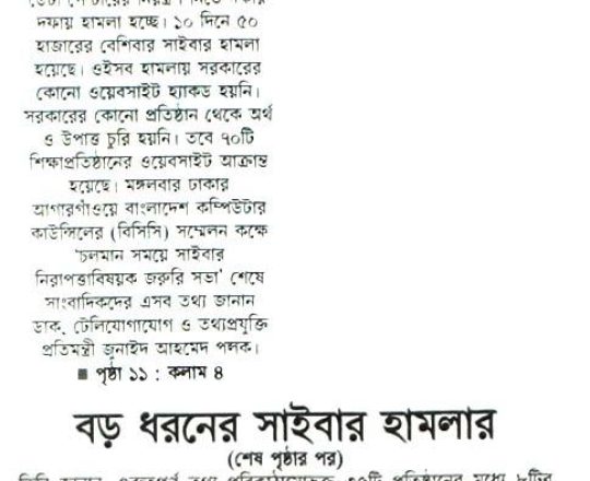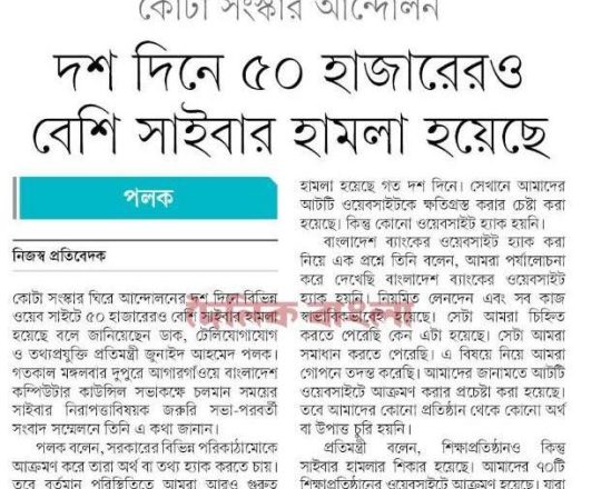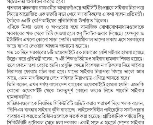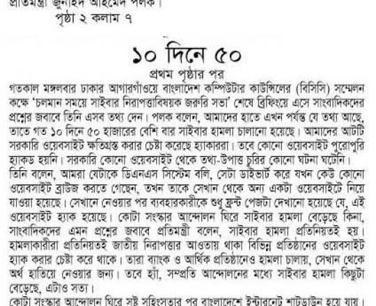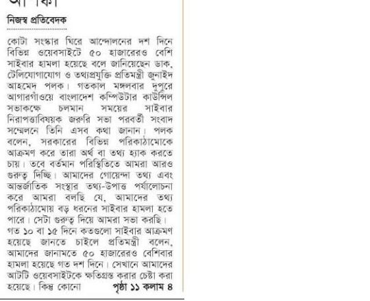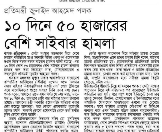আজকালের খবর, ৩১ জুলাই ২০২৪, ১০ দিনে ৫০ হাজারের বেশি সাইবার হামলা -পলক