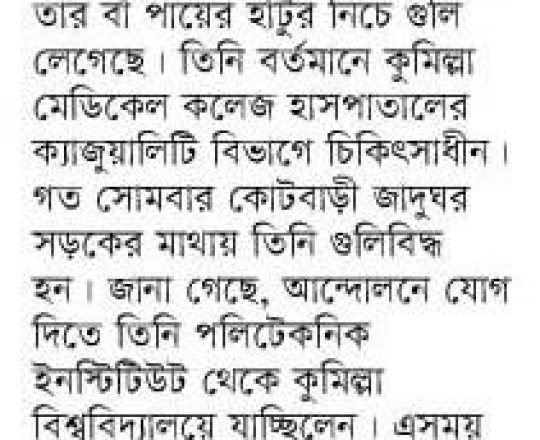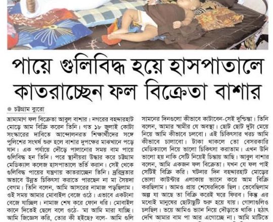 আজকালের খবর, ৩১ জুলাই ২০২৪, পায়ে গুলিবিদ্ধ হয়ে হাসপাতালে কাতরাচ্ছেন ফল বিক্রেতা বাশার