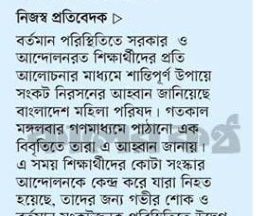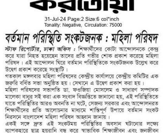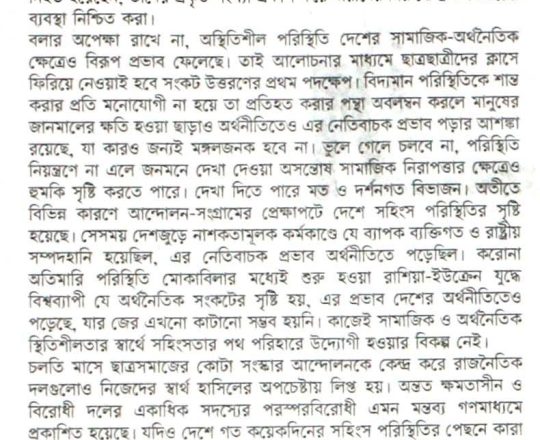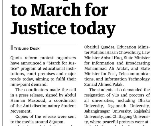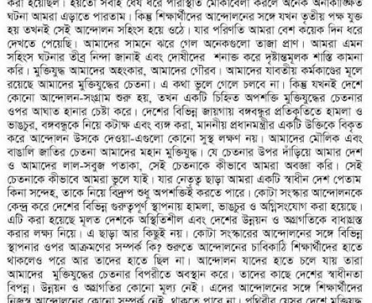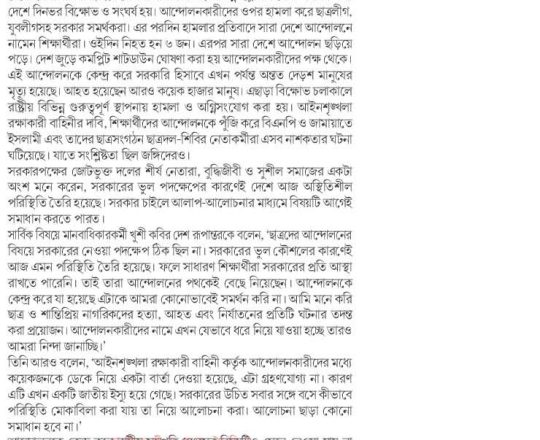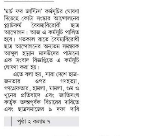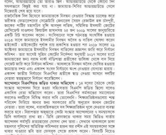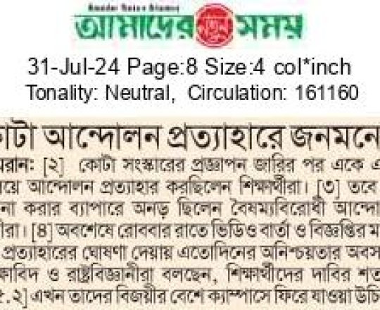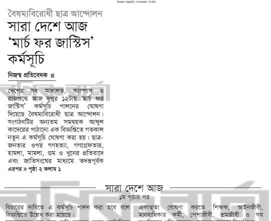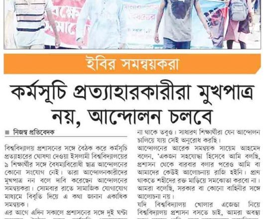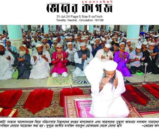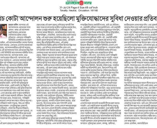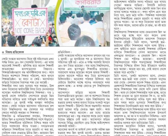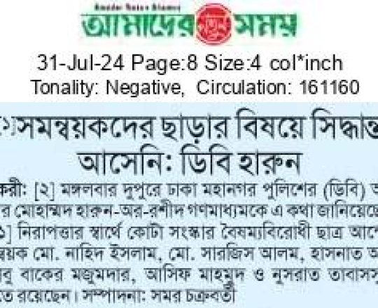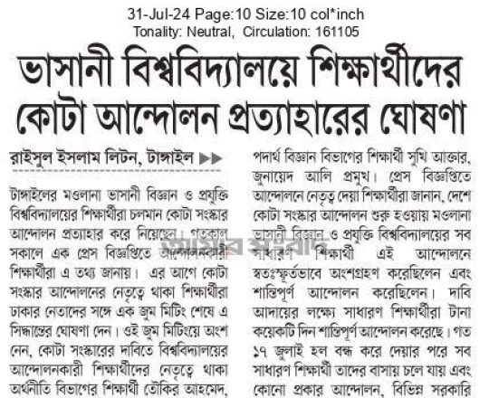ভোরের আকাশ, ৩১ জুলাই ২০২৪, কর্মসূচি প্রত্যাহারকারীরা মুখপাত্র নয়, আন্দোলন চলবে