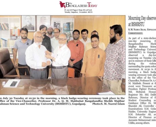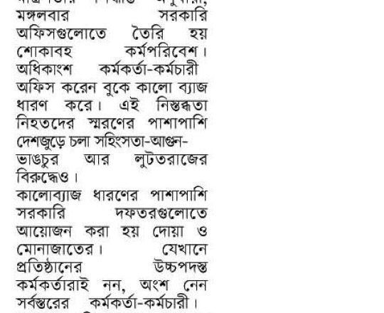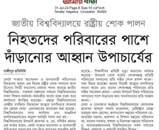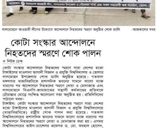 আজকালের খবর, ৩১ জুলাই ২০২৪, কোটা সংস্কার আন্দোলনে নিহতদের স্মরণে শোক পালন