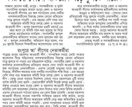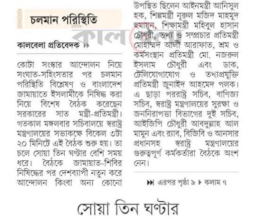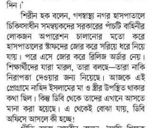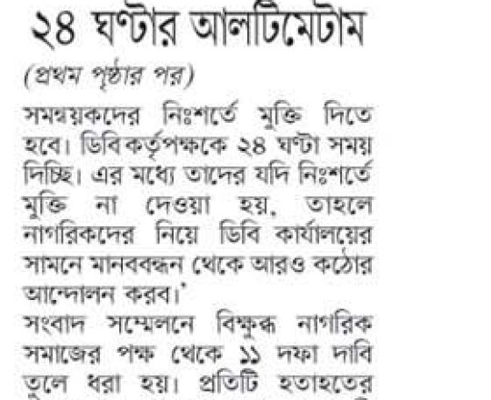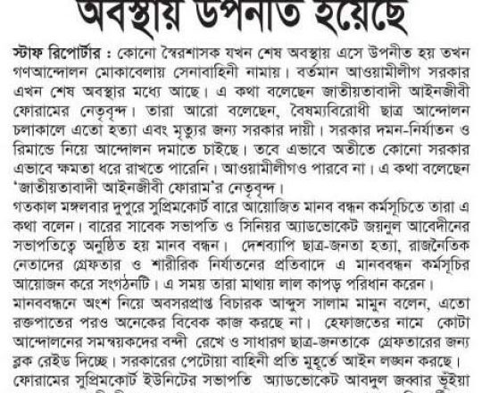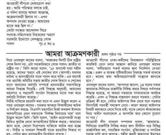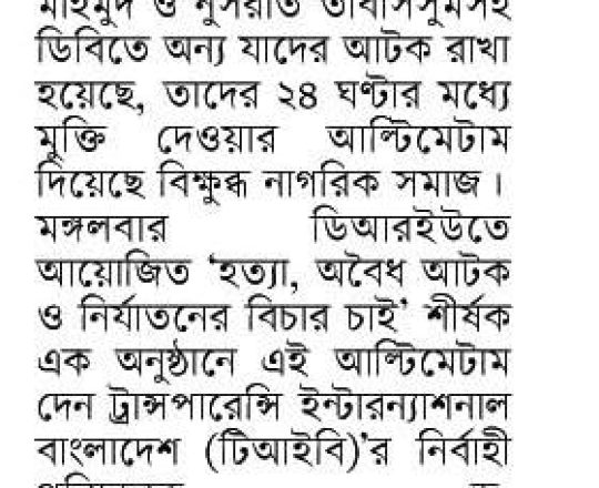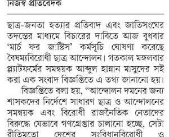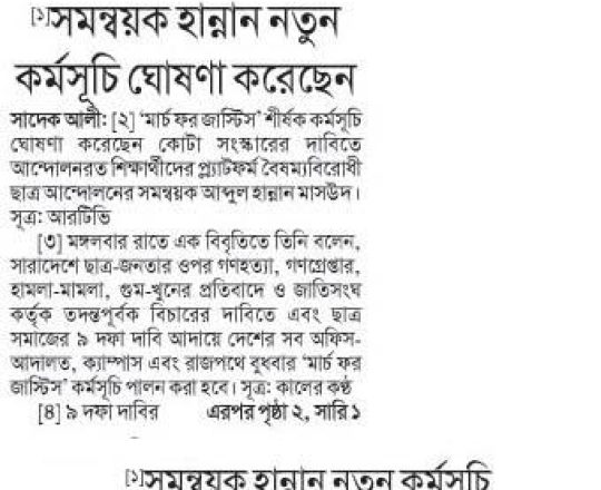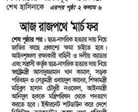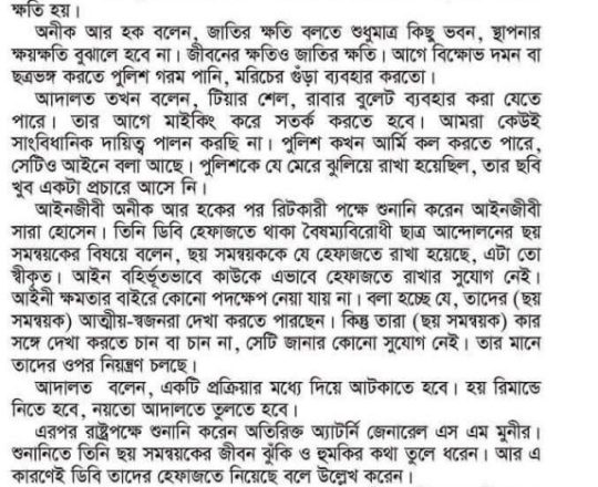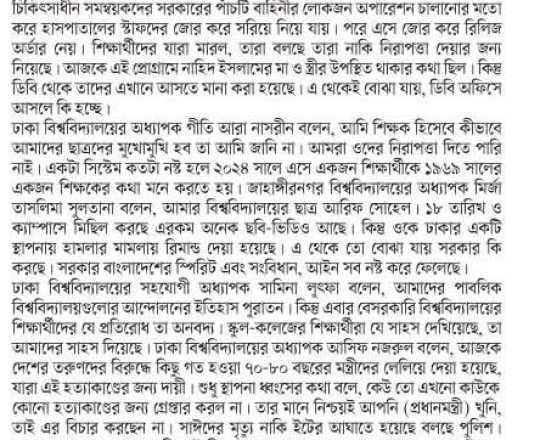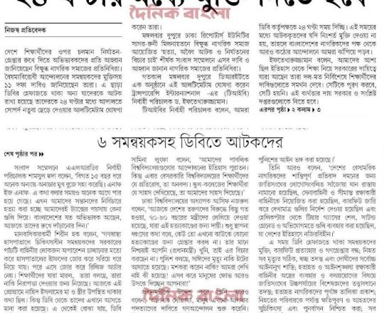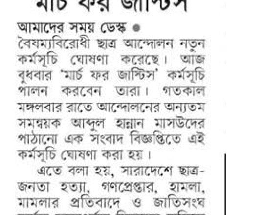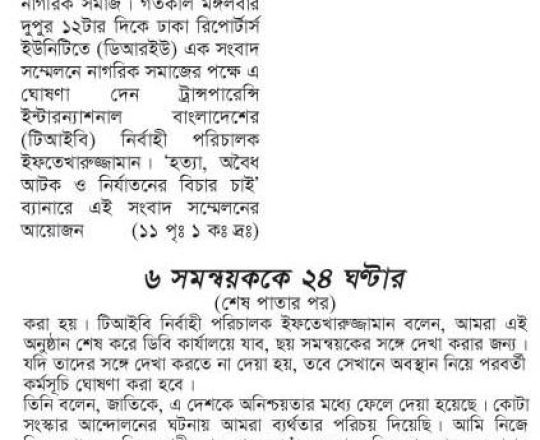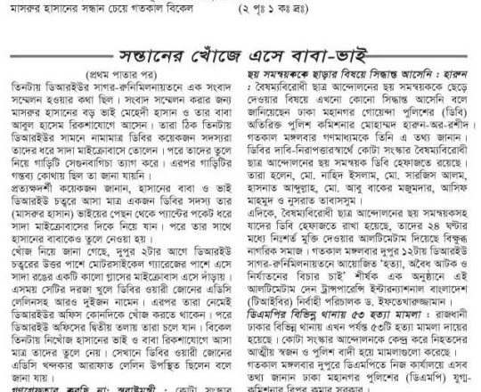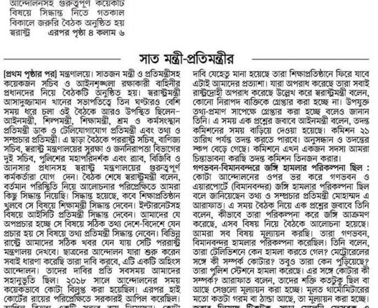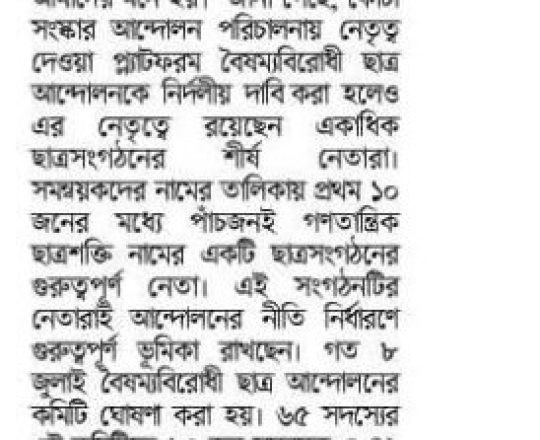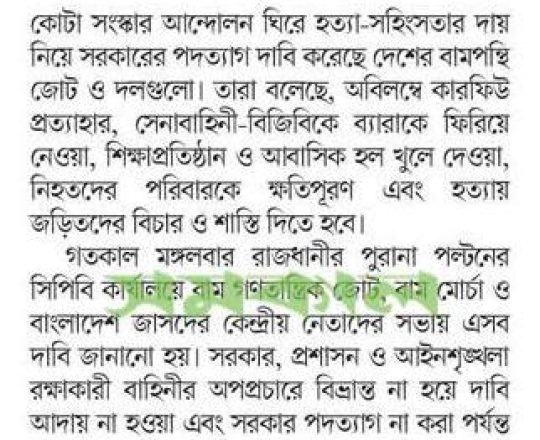 প্রথম আলো,৩১ জুলাই,৬ সমন্বয়ককে ২৪ ঘণ্টার মধ্যে মুক্তি দিতে 'বিক্ষুব্ধ নাগরিক সমাজের' আলটিমেটাম