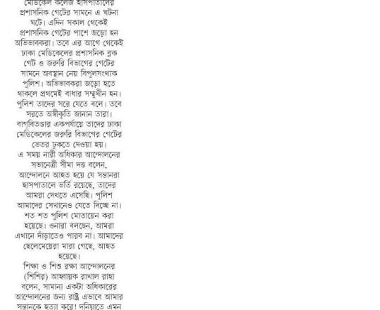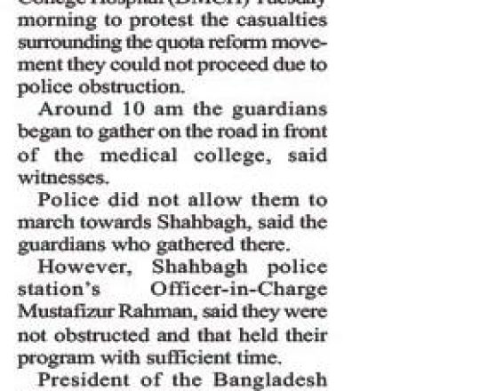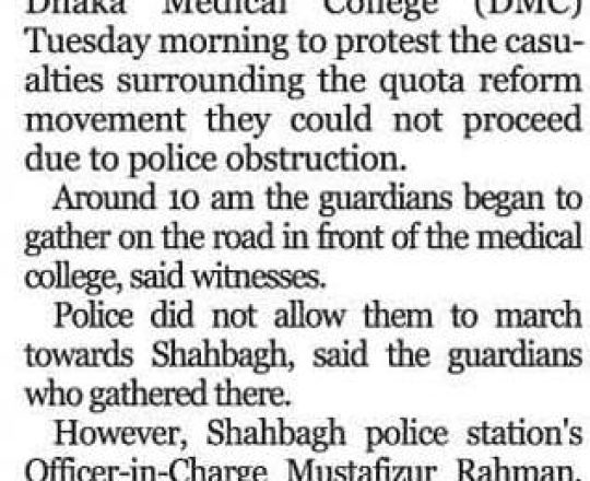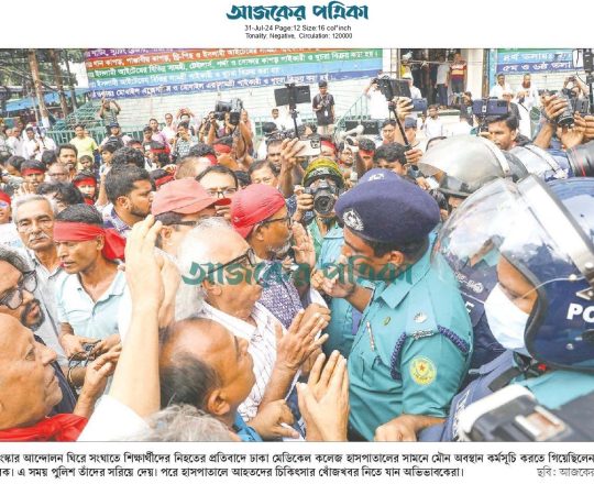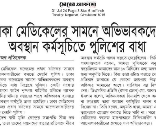 ভোরের আকাশ, ৩১ জুলাই ২০২৪, ঢাকা মেডিকেলের সামনে অভিভাবকদের অবস্থান কর্মসূচিতে পুলিশের বাধা