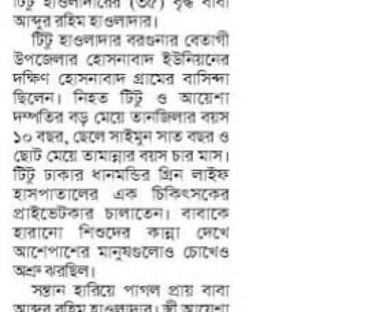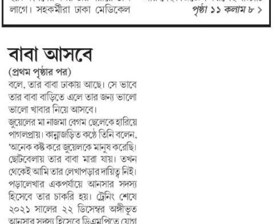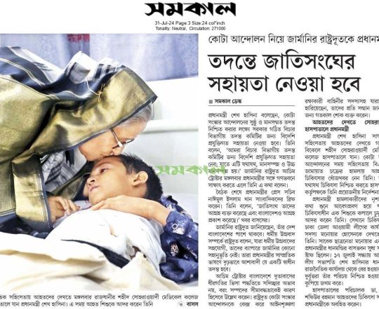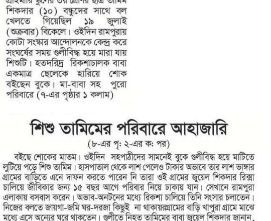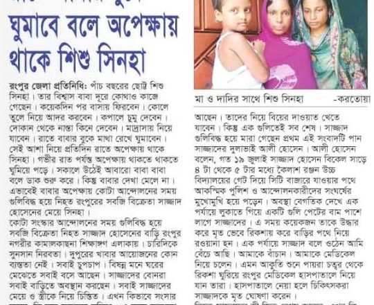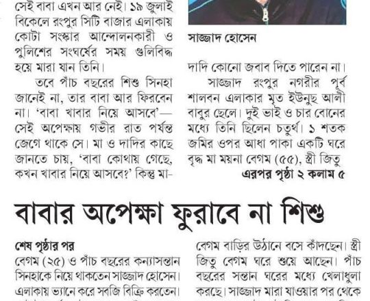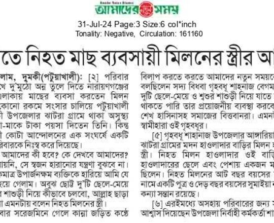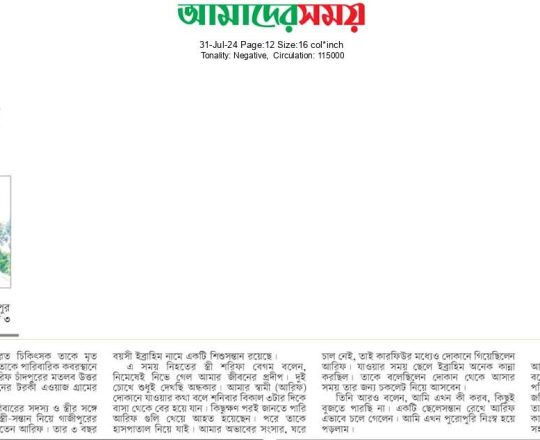 আজকের পত্রিকা, ৩১ জুলাই ২০২৪, সন্তানদের নিয়ে বিপদে গুলিতে নিহত আমিরের স্ত্রী