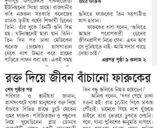 আজকের পত্রিকা, ৩১ জুলাই ২০২৪, রক্ত দিয়ে জীবন বাঁচানো ফারুকের রক্তে ভিজল পথ