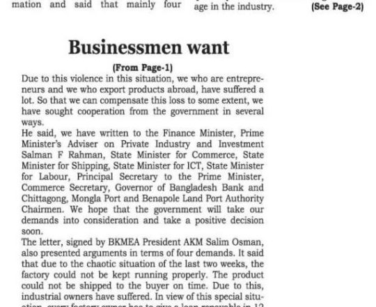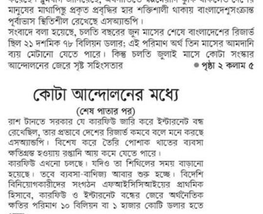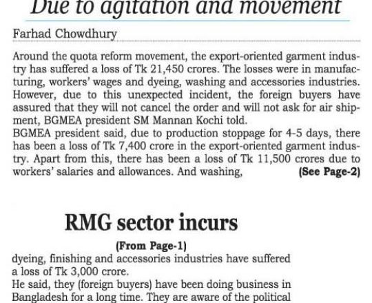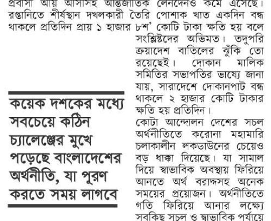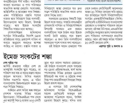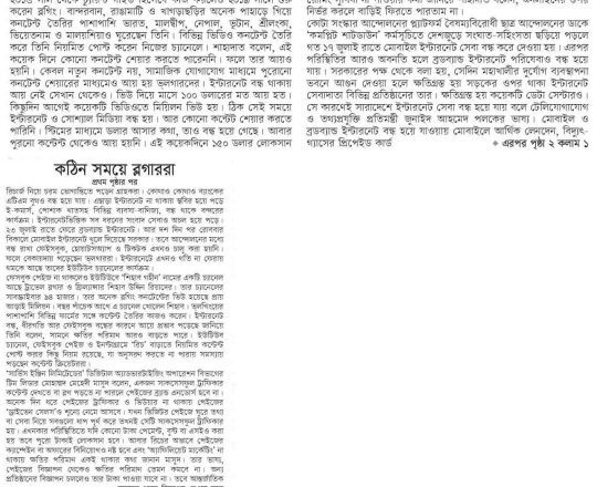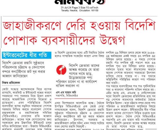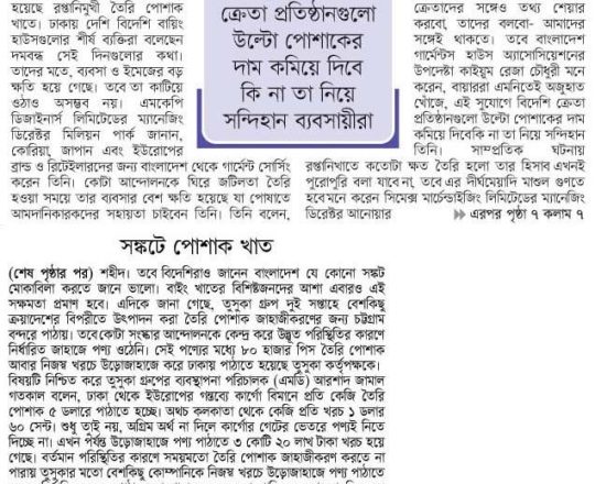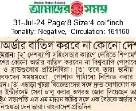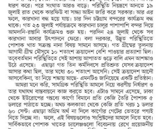 ভোরের পাতা, ৩১ জুলাই ২০২৪, সঙ্কটে পোশাক খাত