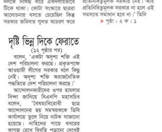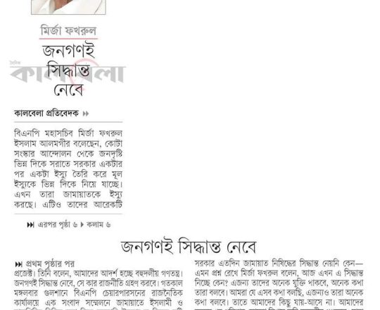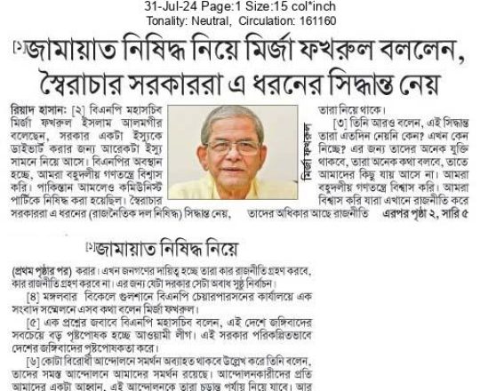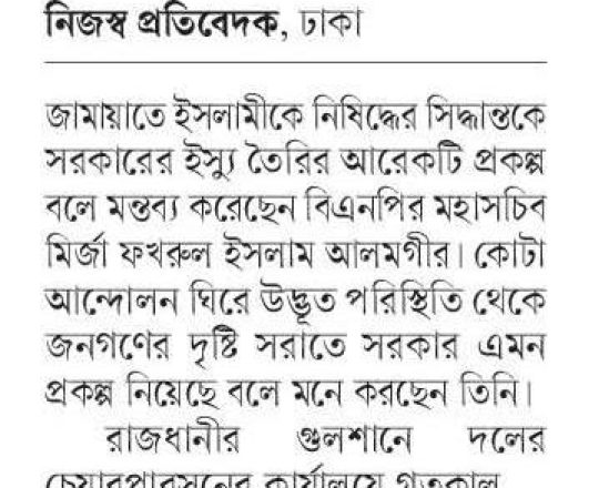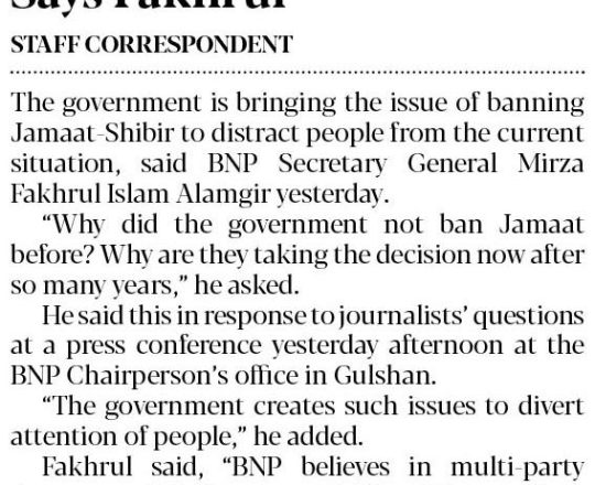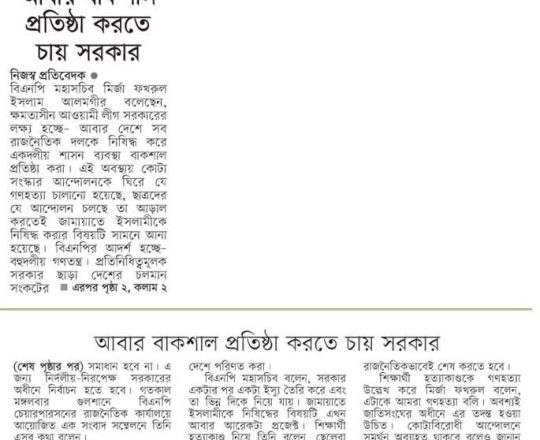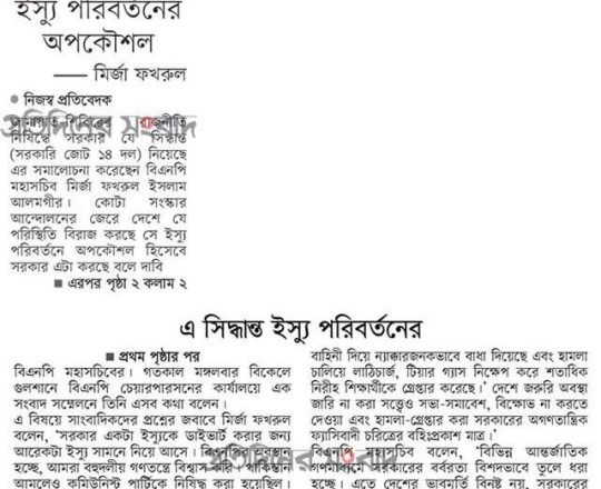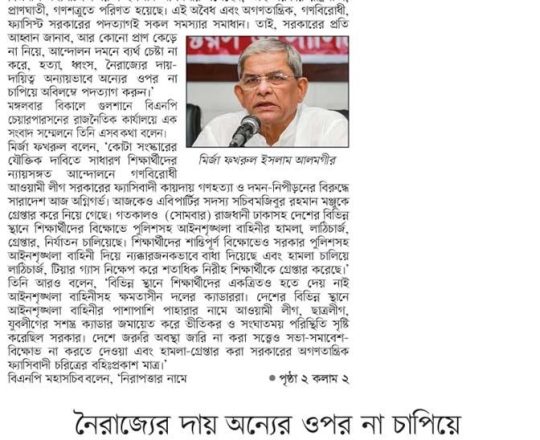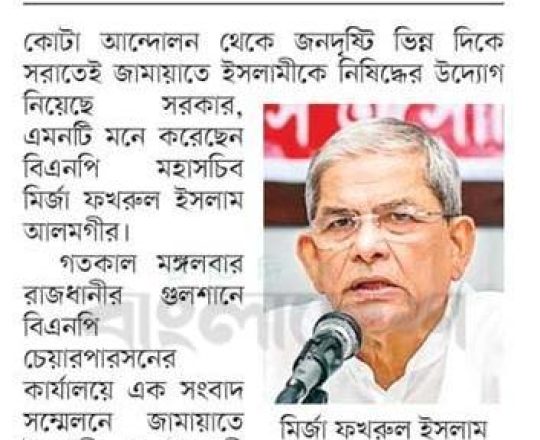 আজকের পত্রিকা, ৩১ জুলাই ২০২৪, সরকারের ইস্যু তৈরির আরেক প্রকল্প: ফখরুল