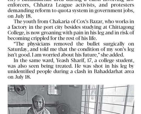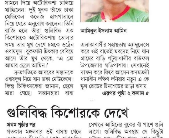 আজকের পত্রিকা, ৩১ জুলাই ২০২৪, গুলিবিদ্ধ কিশোরকে দেখে রিকশাচালক, 'এ তো আমার ছেলে'