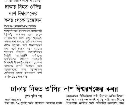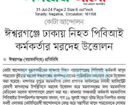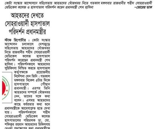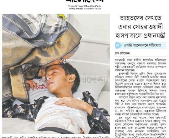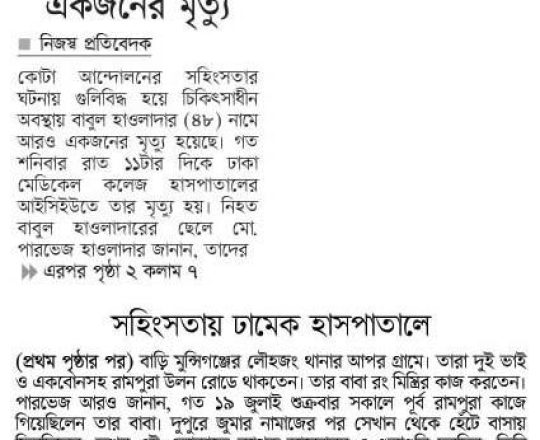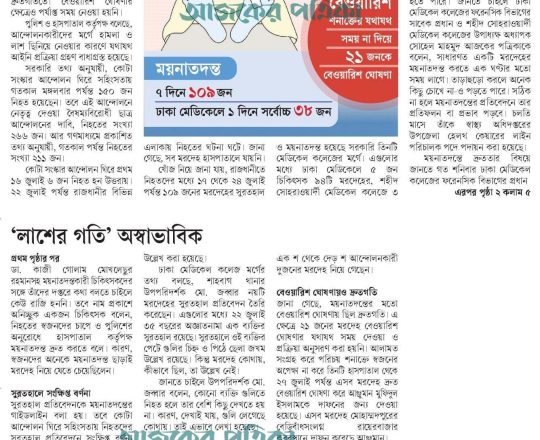 ভোরের পাতা, ৩১ জুলাই ২০২৪, সহিংসতায় ঢামেক হাসপাতালে আরও একজনের মৃত্যু