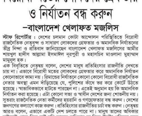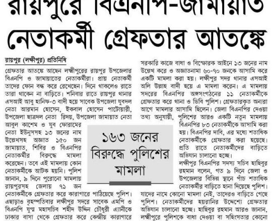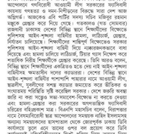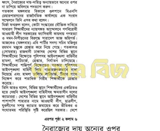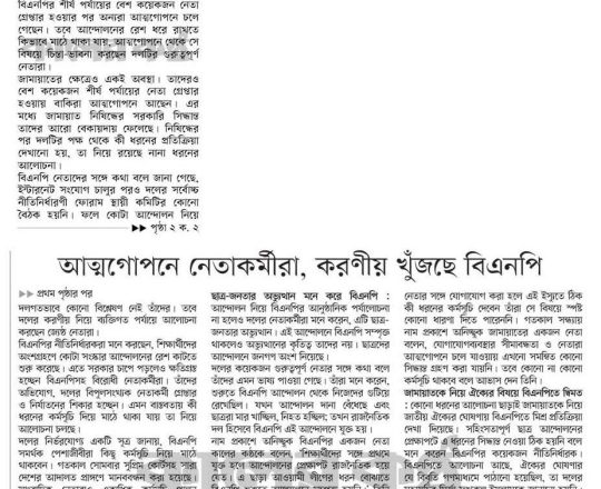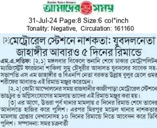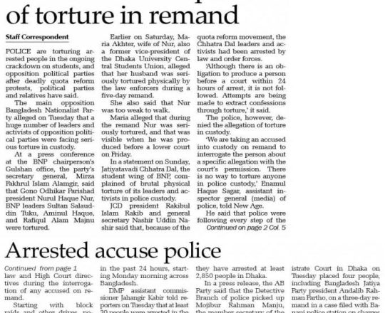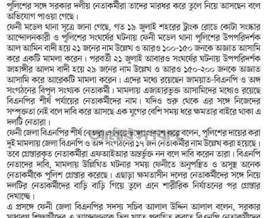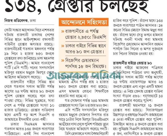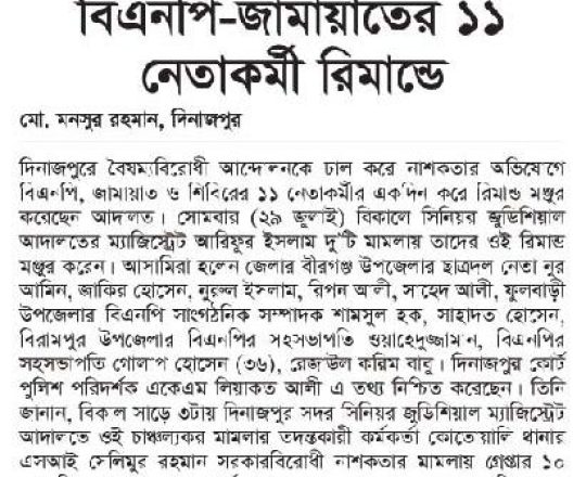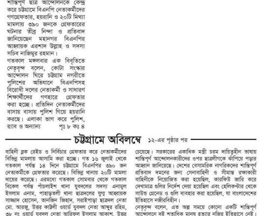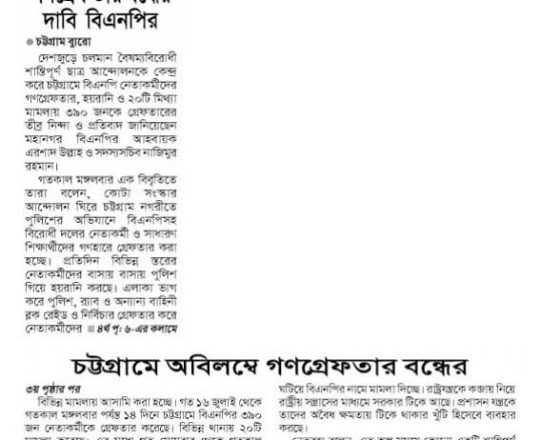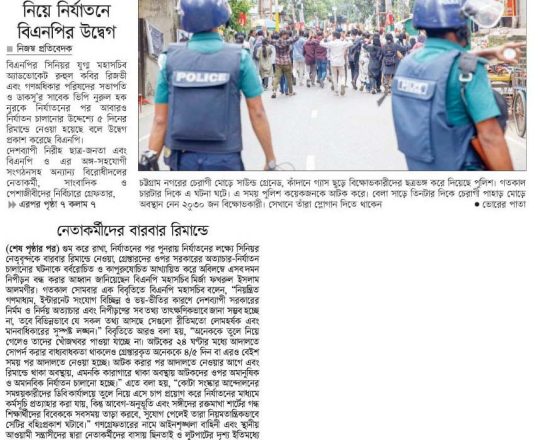 ভোরের পাতা, ৩১ জুলাই ২০২৪, নেতাকর্মীদের বারবার রিমান্ডে নিয়ে নির্যাতনে বিএনপির উদ্বেগ