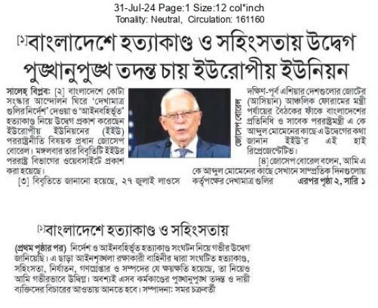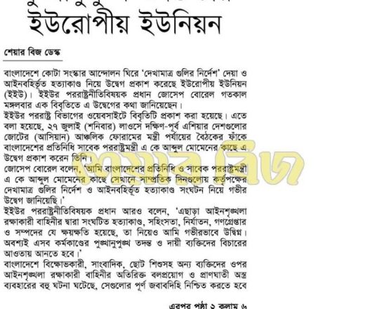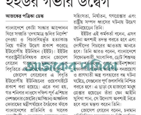 আজকালের খবর, ৩১ জুলাই ২০২৪, সব হত্যা ও ধ্বংসযজ্ঞের পুঙ্খানুপুঙ্খ তদন্তের আহ্বান ইউরোপীয় ইউনিয়নের