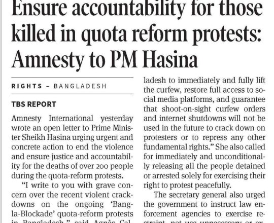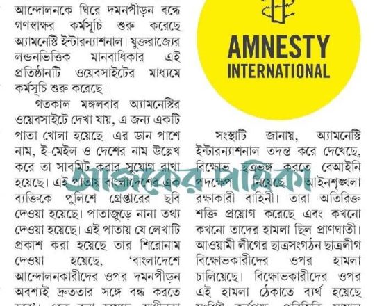 আজকের পত্রিকা, ৩১ জুলাই ২০২৪, দেশে দমনপীড়ন বন্ধে অ্যামনেস্টির গণস্বাক্ষর