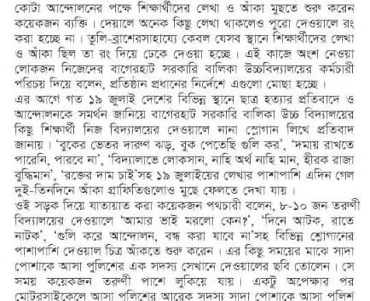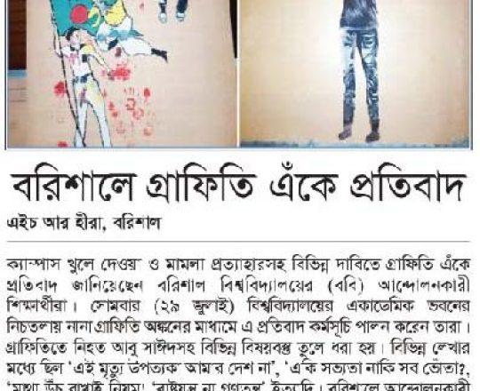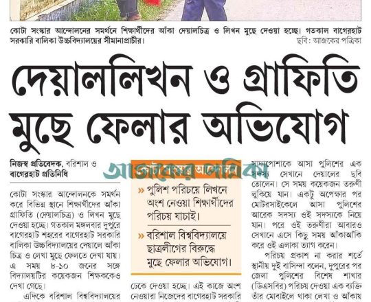 আজকের পত্রিকা, ৩১ জুলাই ২০২৪, ও গ্রাফিতি দেয়াললিখন মুছে ফেলার অভিযোগ