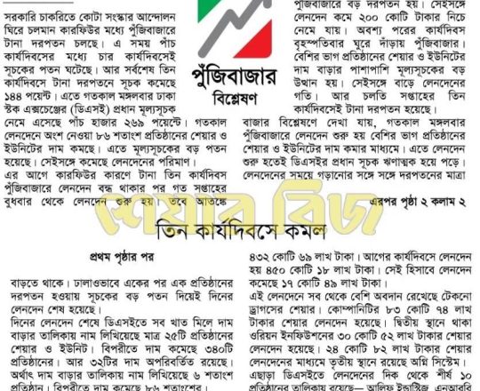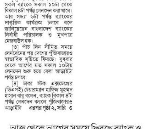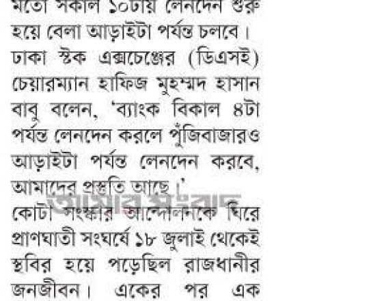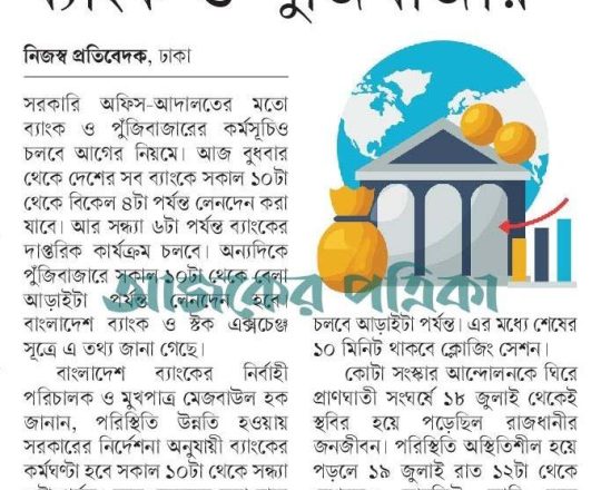 আজকের পত্রিকা, ৩১ জুলাই ২০২৪, আগের সূচিতে ফিরছে ব্যাংক ও পুঁজিবাজার