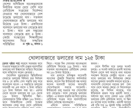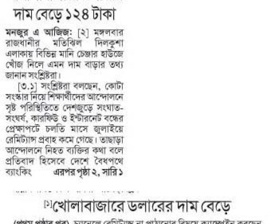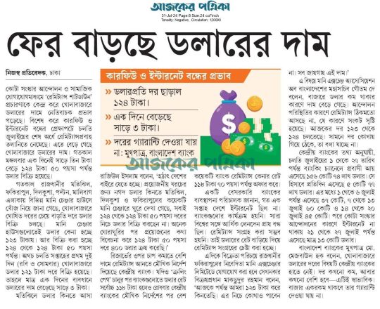আজকের পত্রিকা, ৩১ জুলাই ২০২৪, ফের বাড়ছে ডলারের দাম