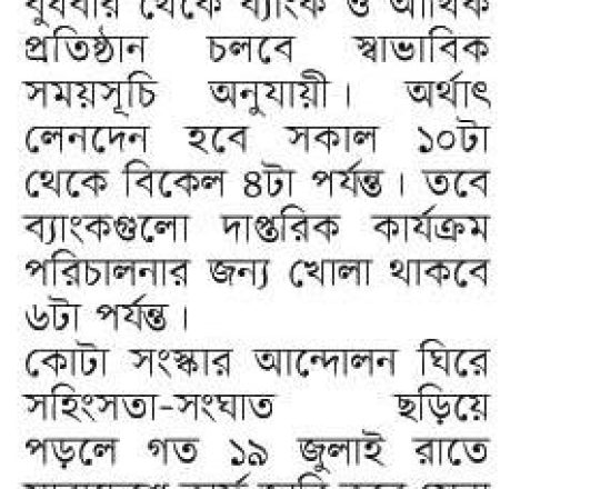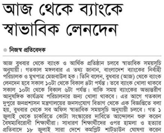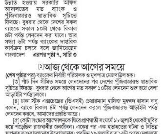 আলোকিত বাংলাদেশ, ৩১ জুলাই ২০২৪, আজ থেকে ব্যাংকে স্বাভাবিক লেনদেন