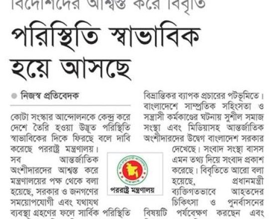 ভোরের আকাশ, ৩১ জুলাই ২০২৪, অফিস আদালত স্বাভাবিক সূচিতে ফিরছে আজ