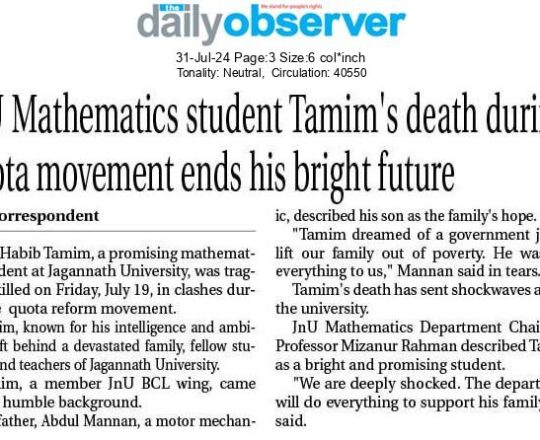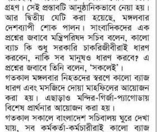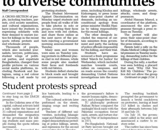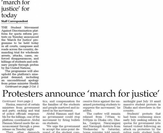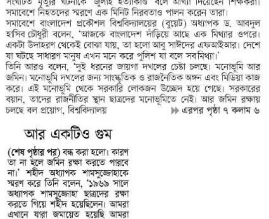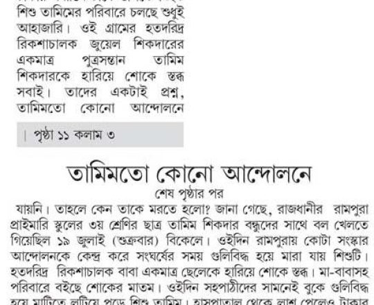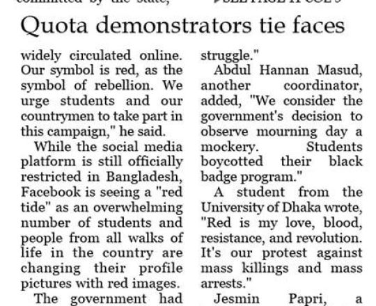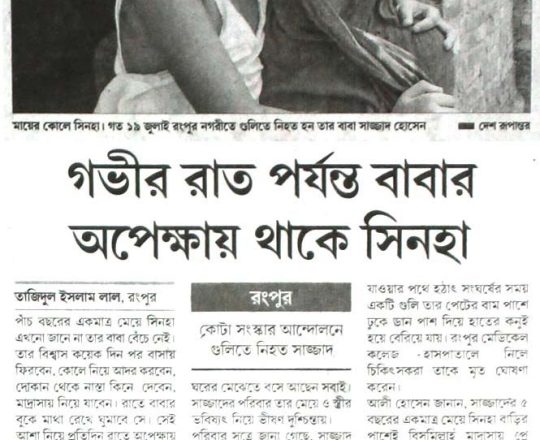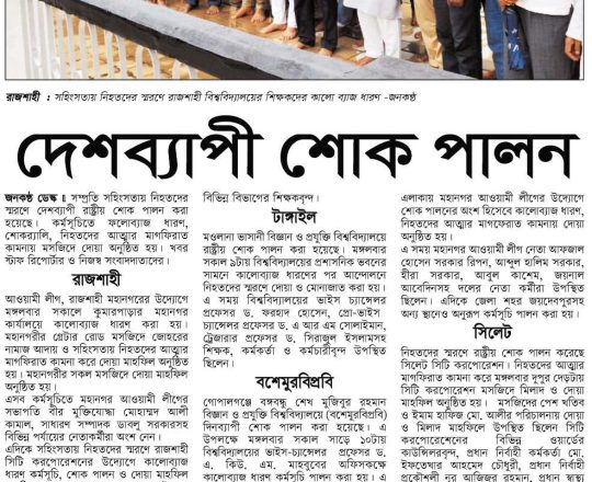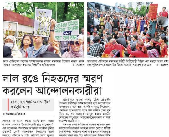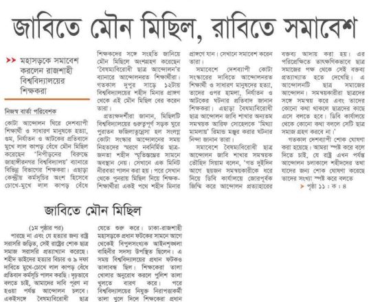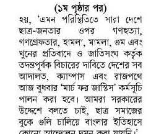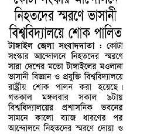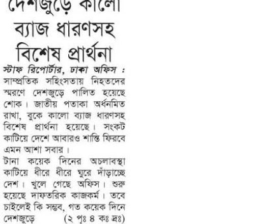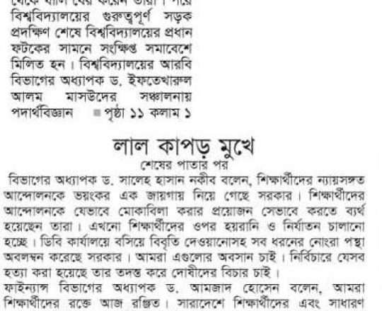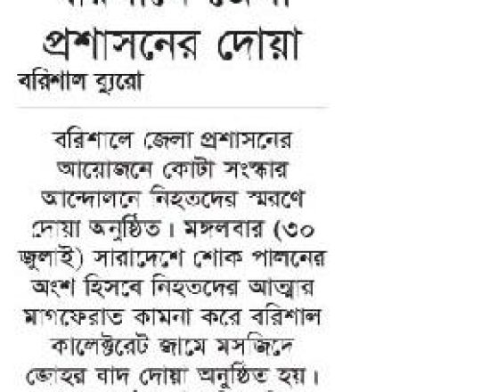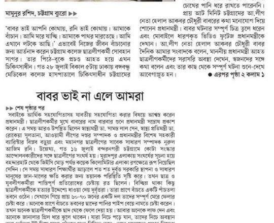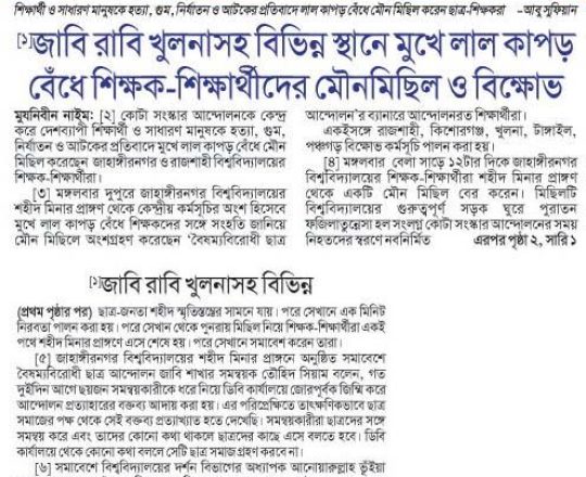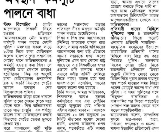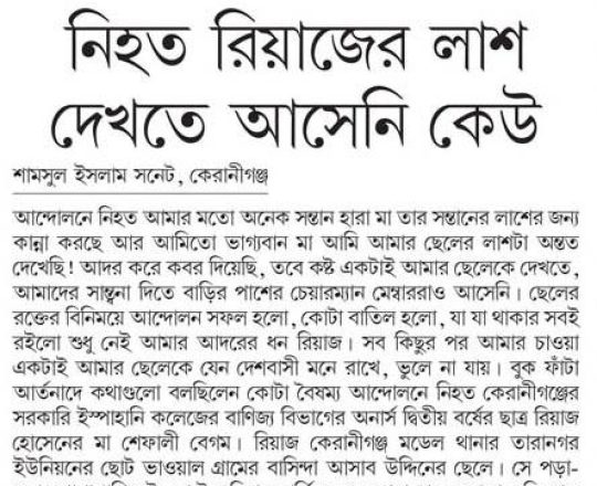 প্রথম আলো,৩১ জুলাই, কোটা আন্দোলনে নিহতদের স্মরণে সারা দেশে শোক পালিত হচ্ছে