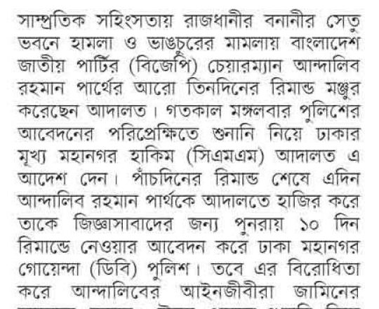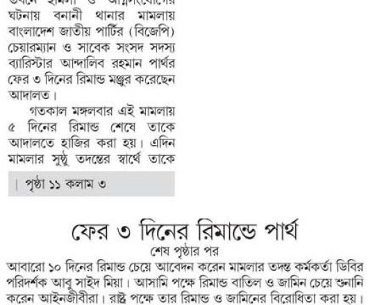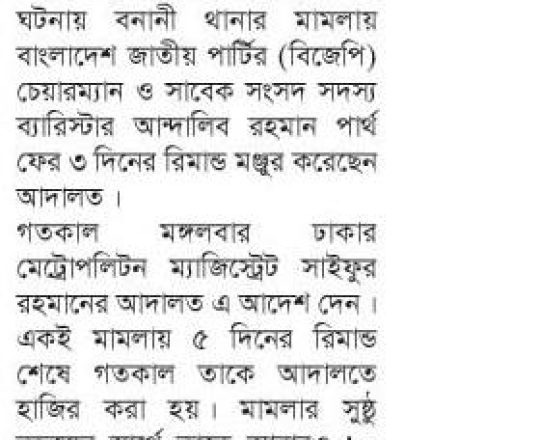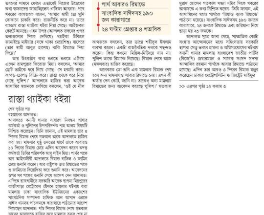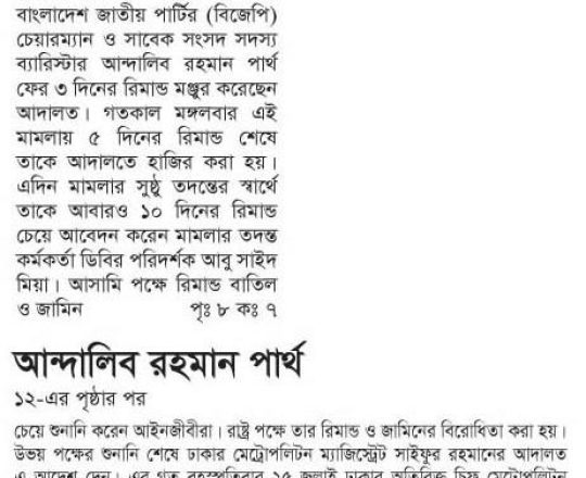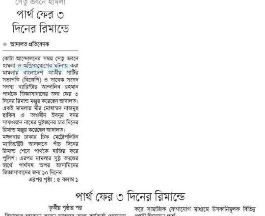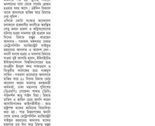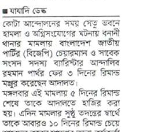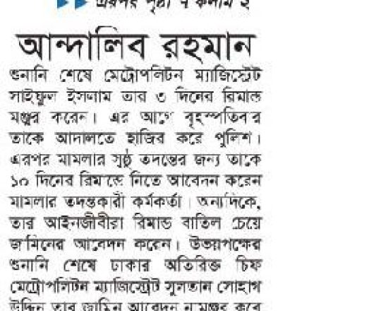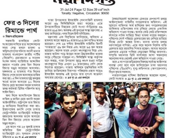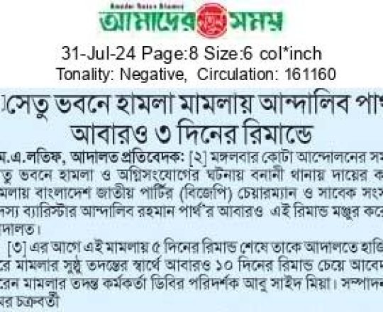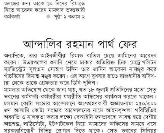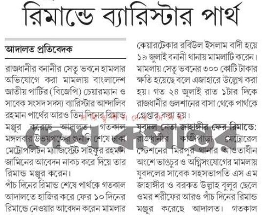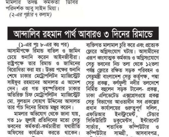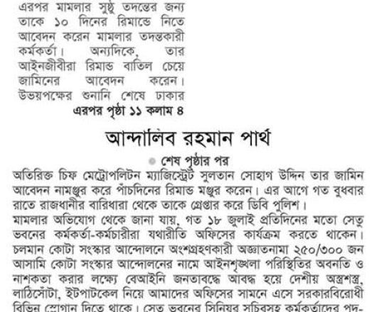 ভোরের আকাশ, ৩১ জুলাই ২০২৪, আবারো রিমান্ডে আন্দালিব পার্থ