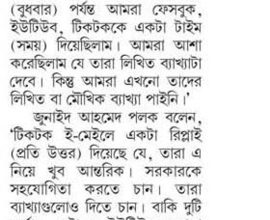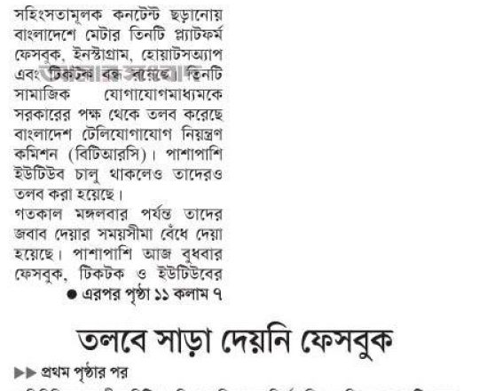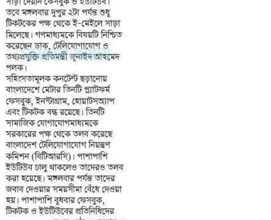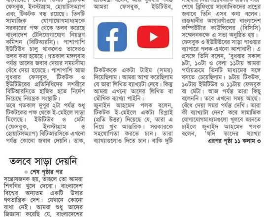 আজকের পত্রিকা, ৩১ জুলাই ২০২৪, সাড়া দেয়নি ফেসবুক টিকটকের ই-মেইল