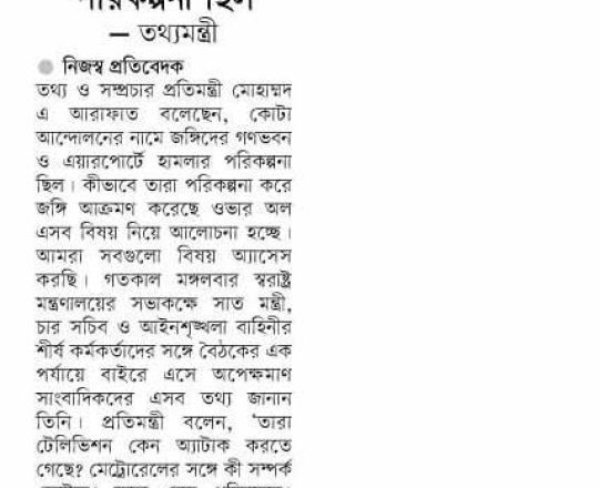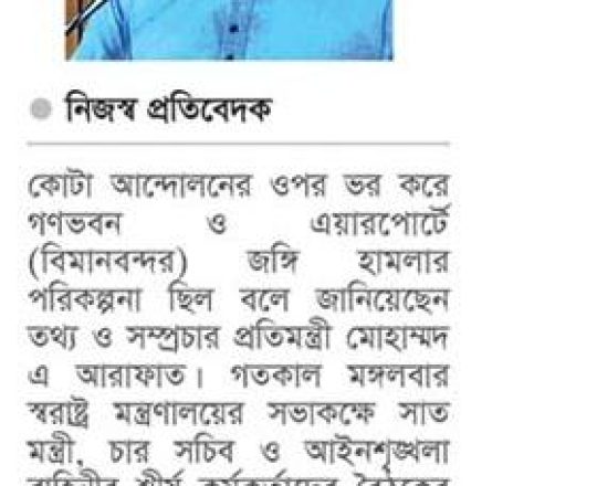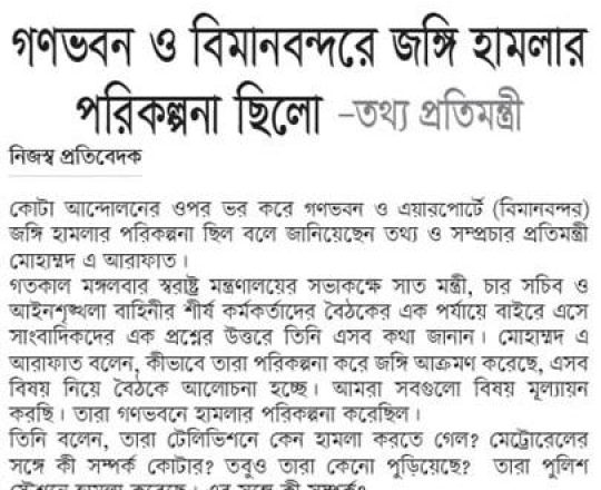 আলোকিত বাংলাদেশ, ৩১ জুলাই ২০২৪, গণভবন ও বিমানবন্দরে জঙ্গি হামলার পরিকল্পনা ছিল তথ্য ও সম্প্রচার প্রতিমন্ত্রী